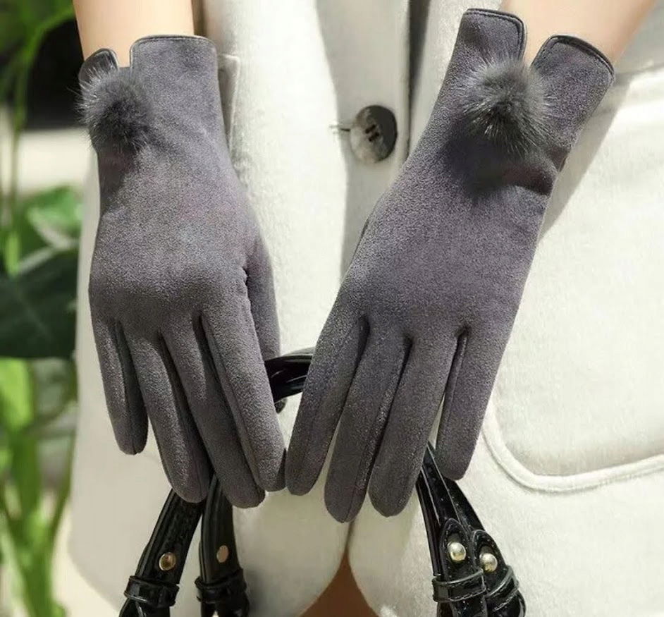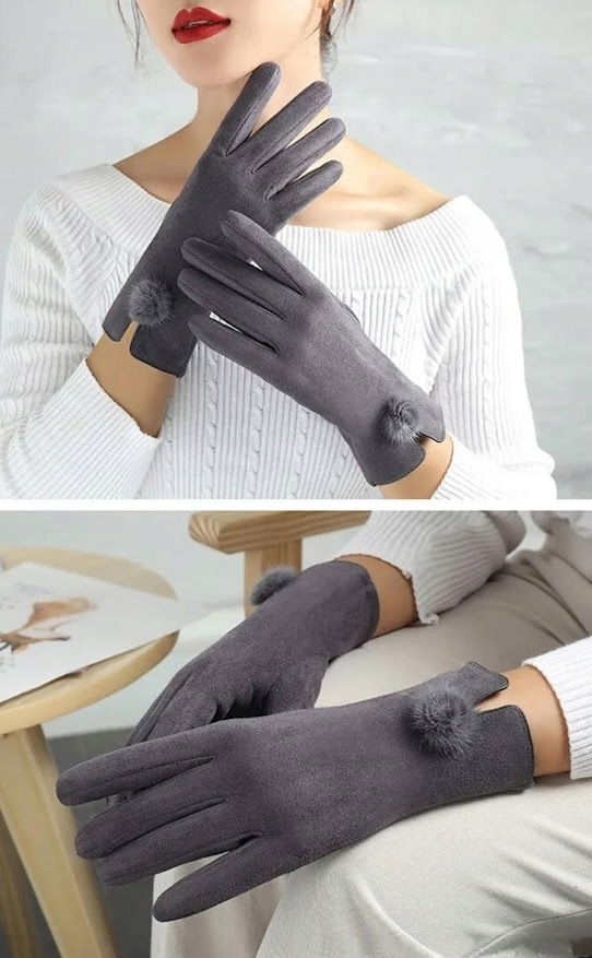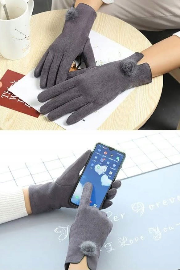 RĘKAWICZKI jesień zima GRAFITOWE Z POMPONEM damskie DOTYKOWE do telefonu