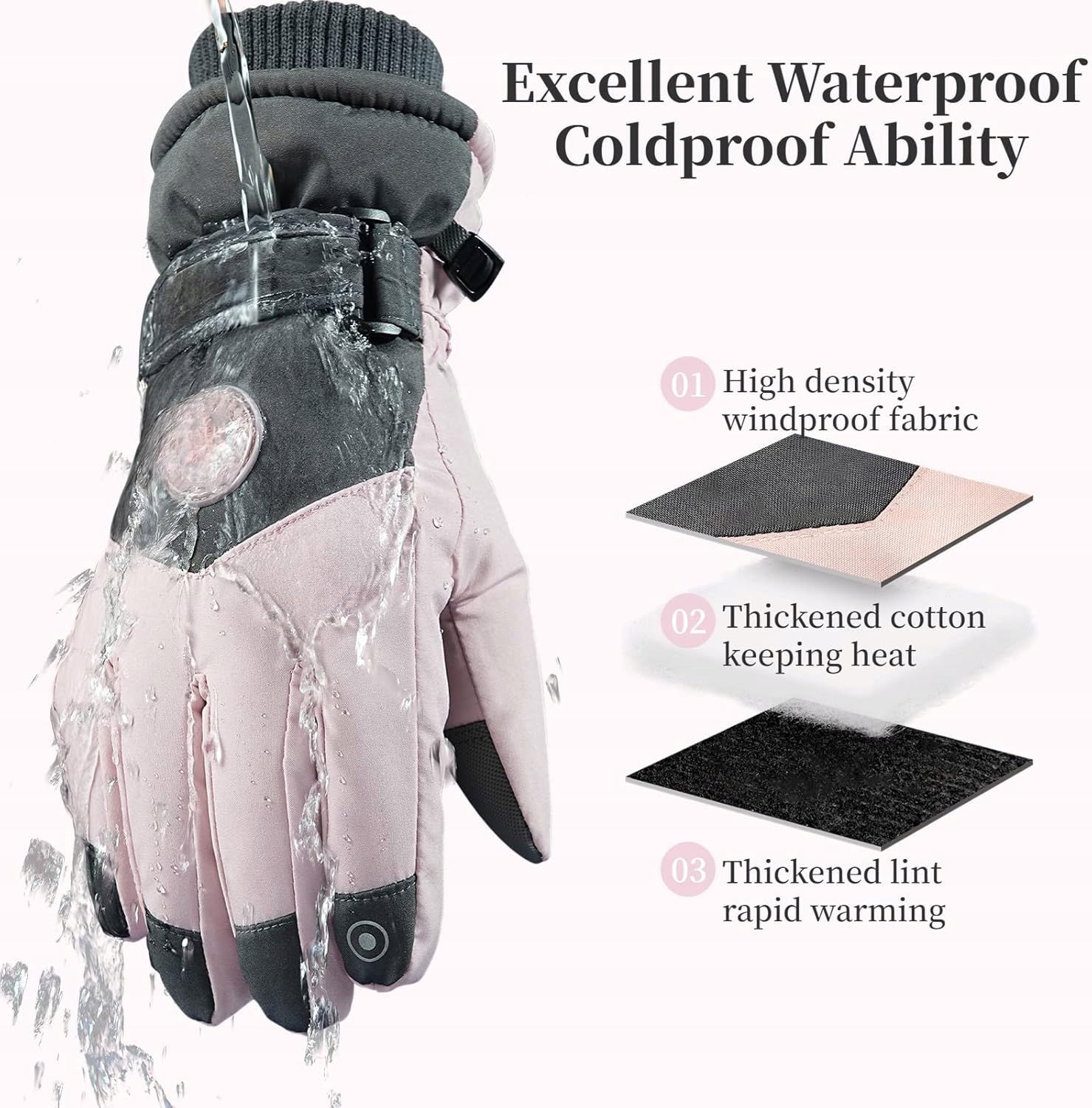 Damskie Rękawiczki Narciarskie i Snowboardowe – Ciepłe, Wodoodporne, Dotykowe
