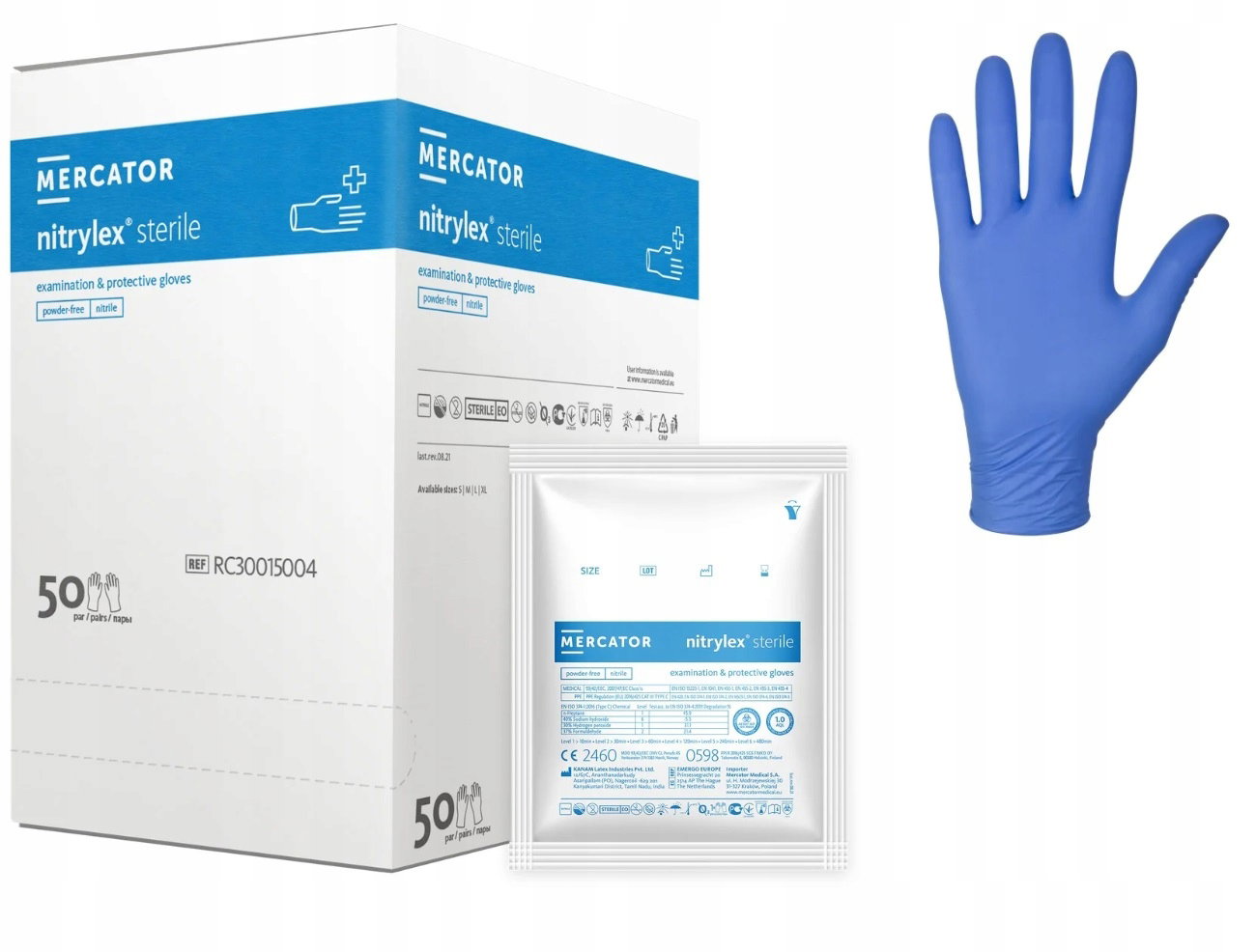 Jednorazowe rękawiczki nitrylowe w rozmiarze M renomowanej marki Mercator. Rękawiczki sterylne (pakowane parami w saszetki). Rękawiczki w kolorze niebieskim. Opakowanie zawiera 50 par rękawiczek.