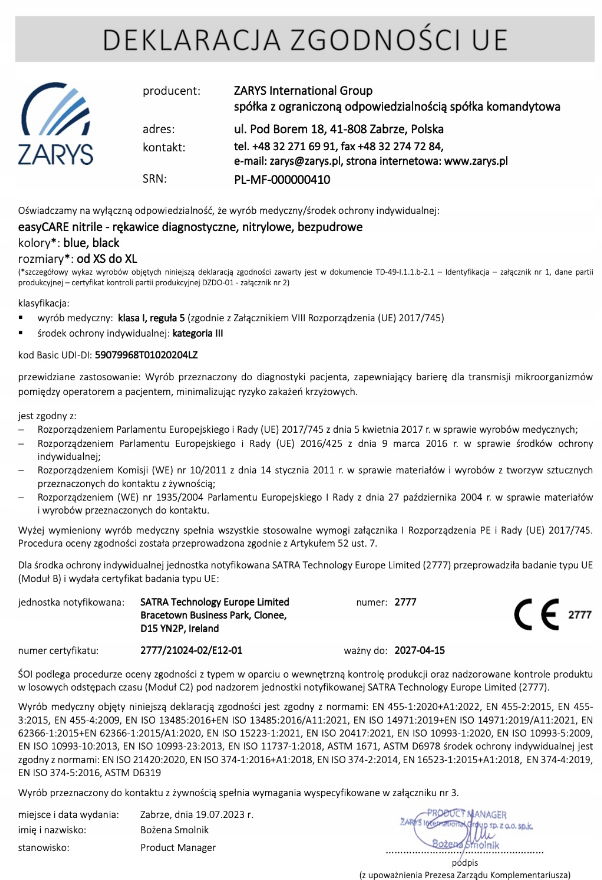 Produkt ma oznaczenie CE - Nr jednostki notyfikowanej 2777