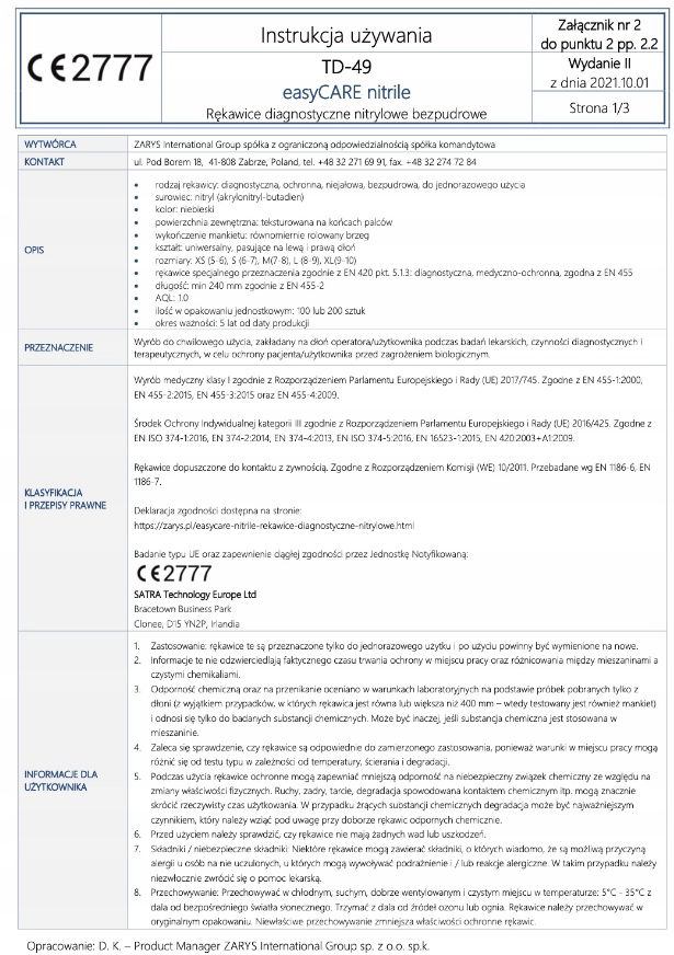 • Materiał: nieuczulający nitryl