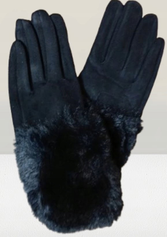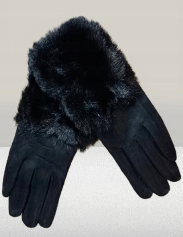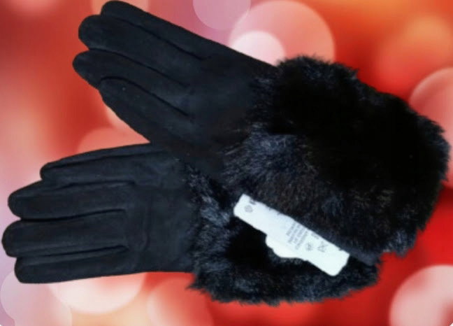 RĘKAWICZKI ZIMOWE ocieplane futerkiem GLOVES CIEPŁE CZARNE L