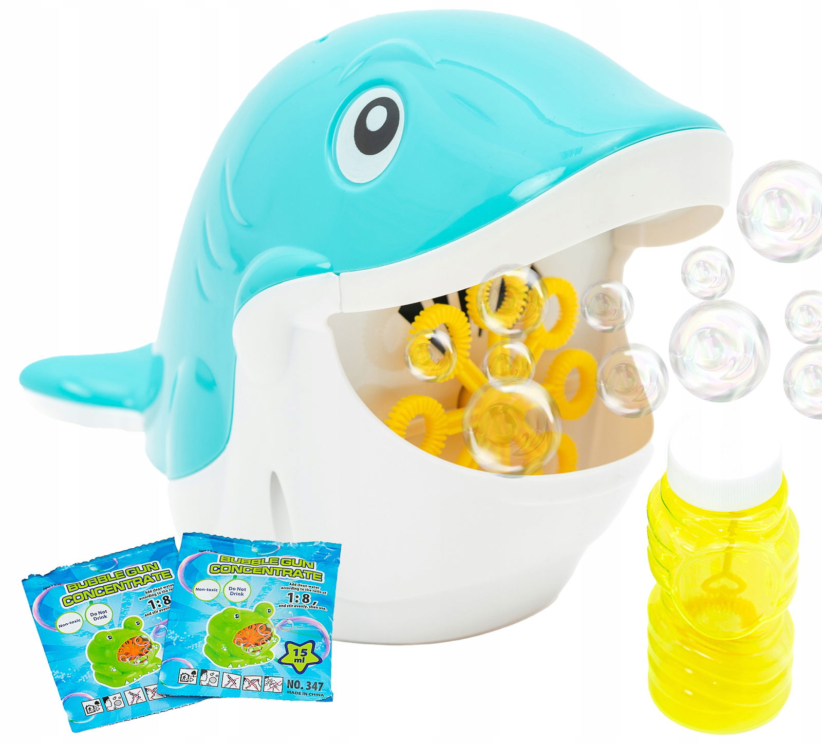 Ten wesoły rekinek przeznaczony jest do automatycznego wykonywania baniek mydlanych. Jest niezawodny w każdej sytuacji.