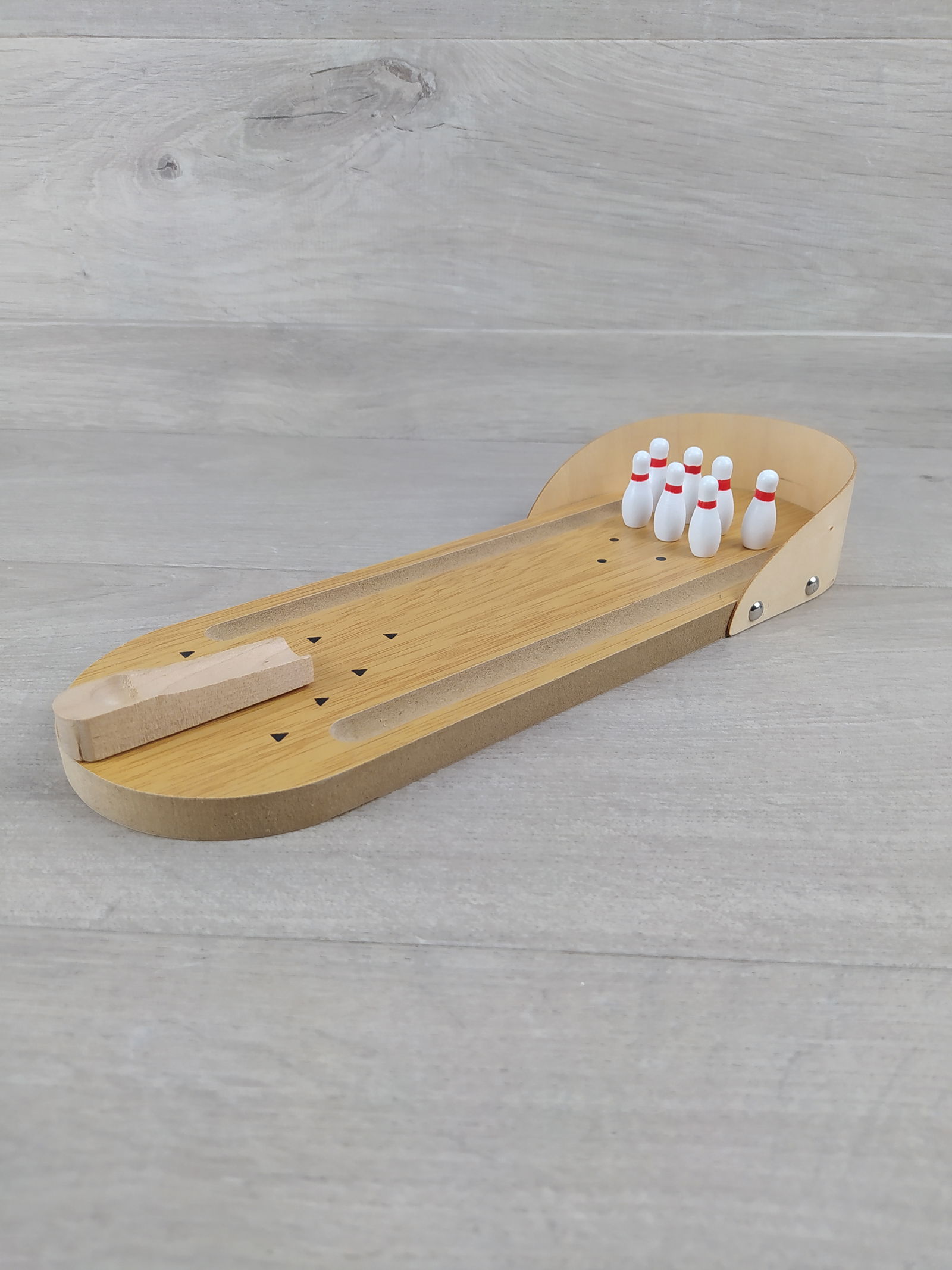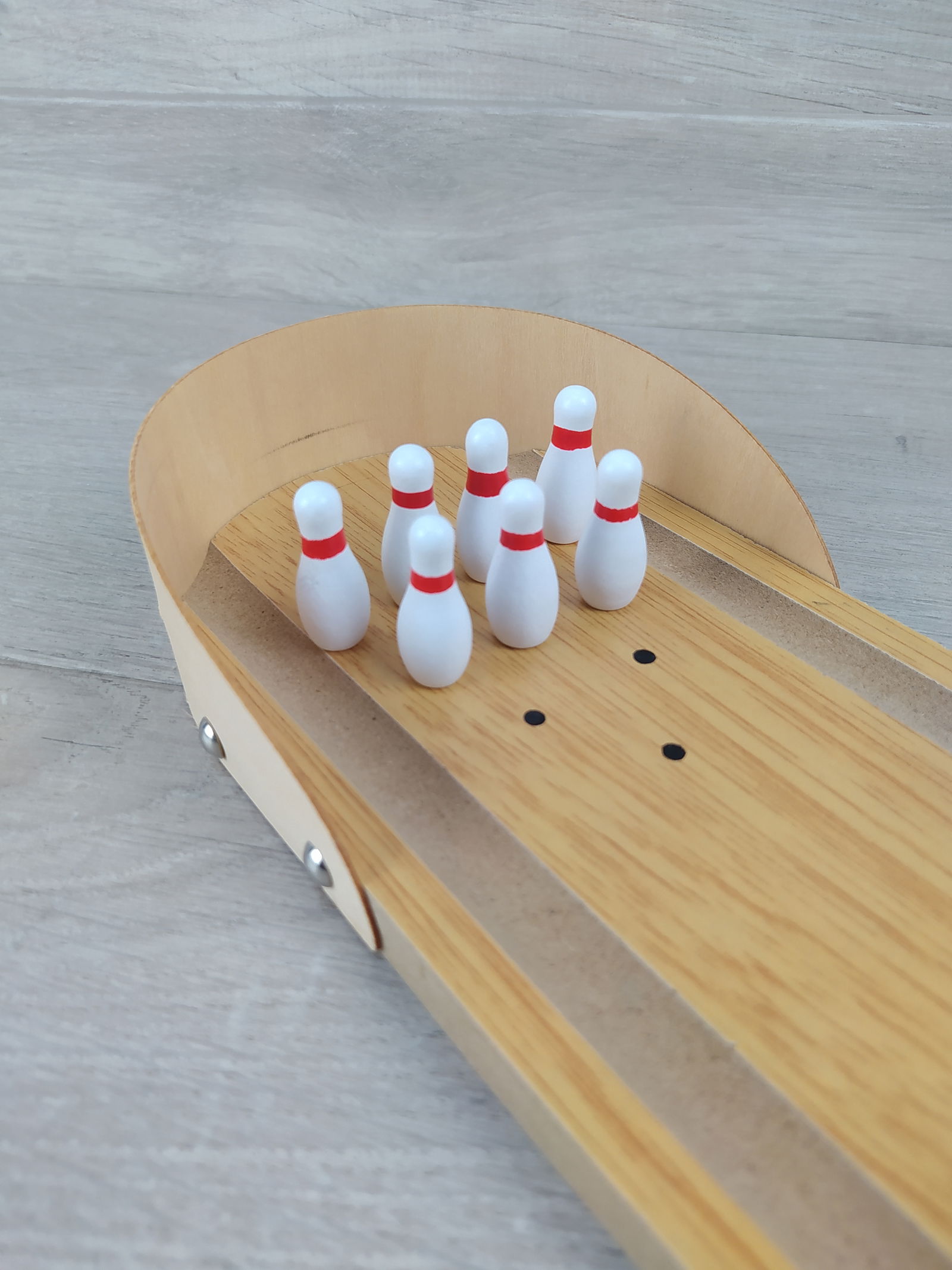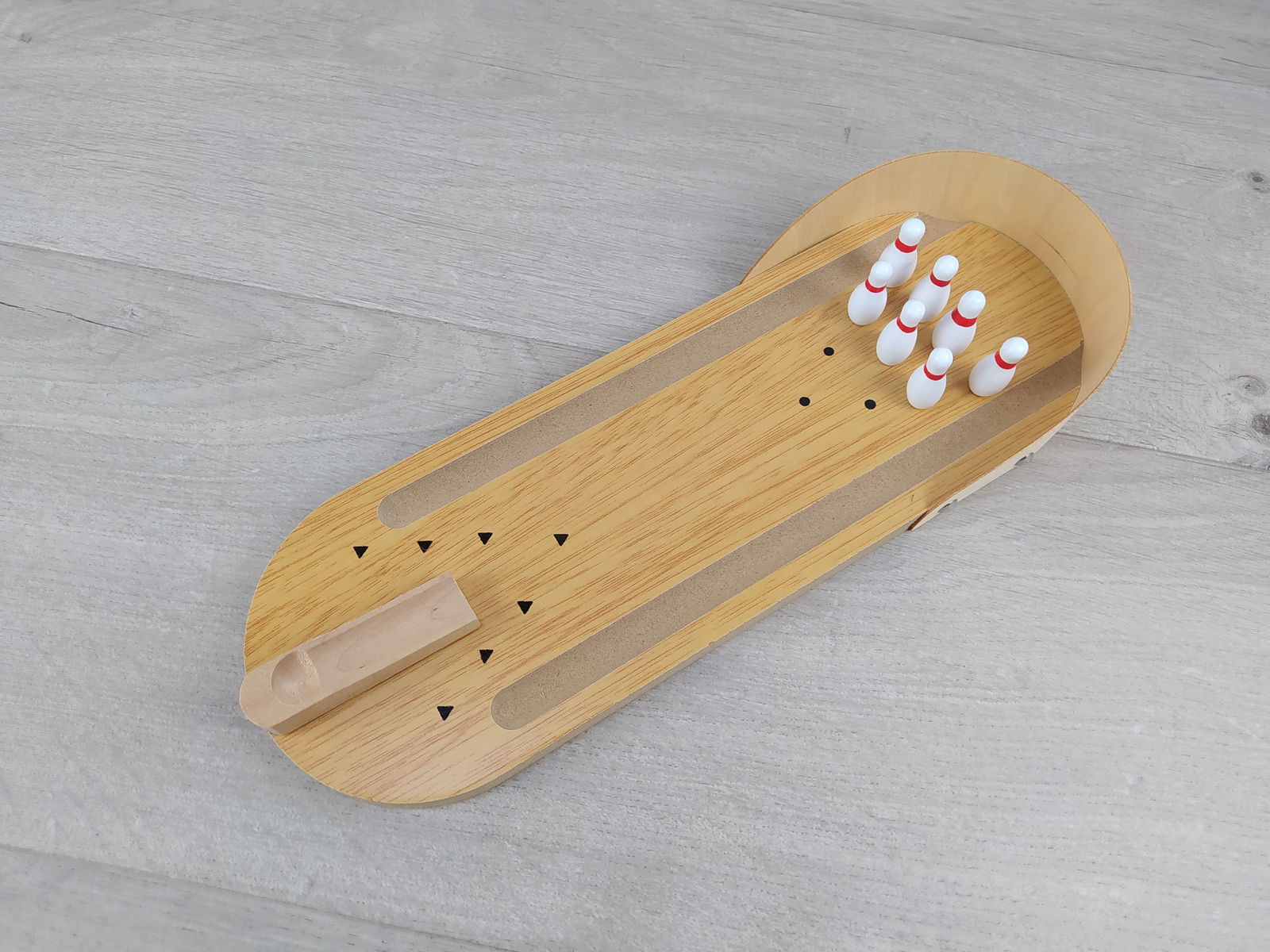 Relaxdays Mini kręgle to kompaktowy zestaw do gry w kręgle, który zapewnia świetną zabawę dzieciom i dorosłym. Wykonany z naturalnego drewna, zestaw składa się z rampy, metalowej kulki oraz 10 miniaturowych kręgli, które można ustawiać w klasycznej formacji. Idealny do zabawy na stole, biurku lub podłodze.