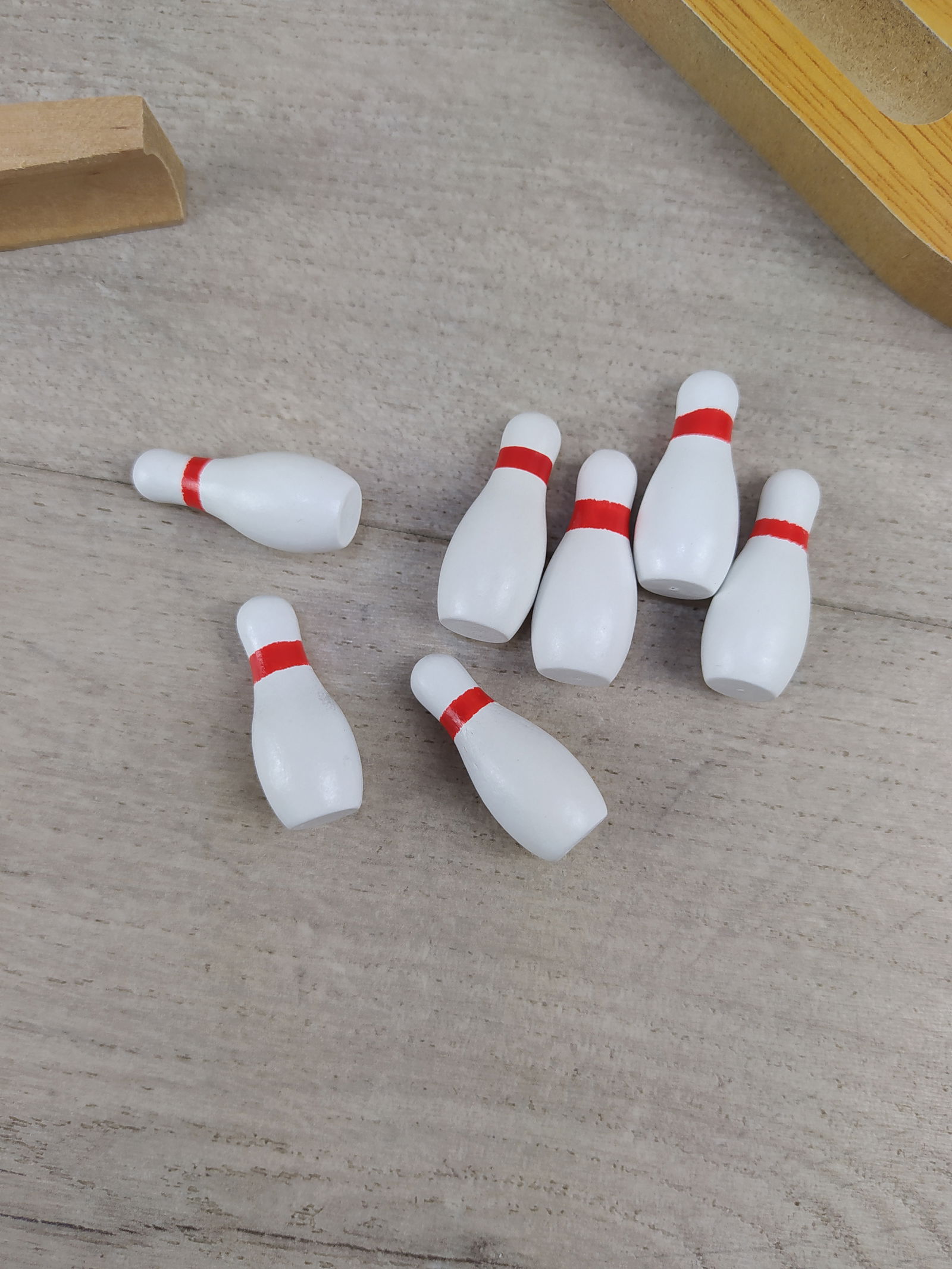 zestaw zawiera: rampę, kulkę, 10 kręgli