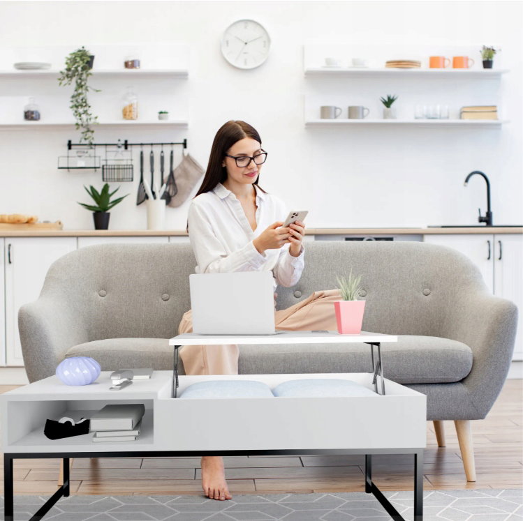 Wielofunkcyjny stolik kawowy to praktyczny dodatek do salonu, który ułatwi przechowywanie oraz zapewni wygodną przestrzeń do pracy lub relaksu przed telewizorem.
