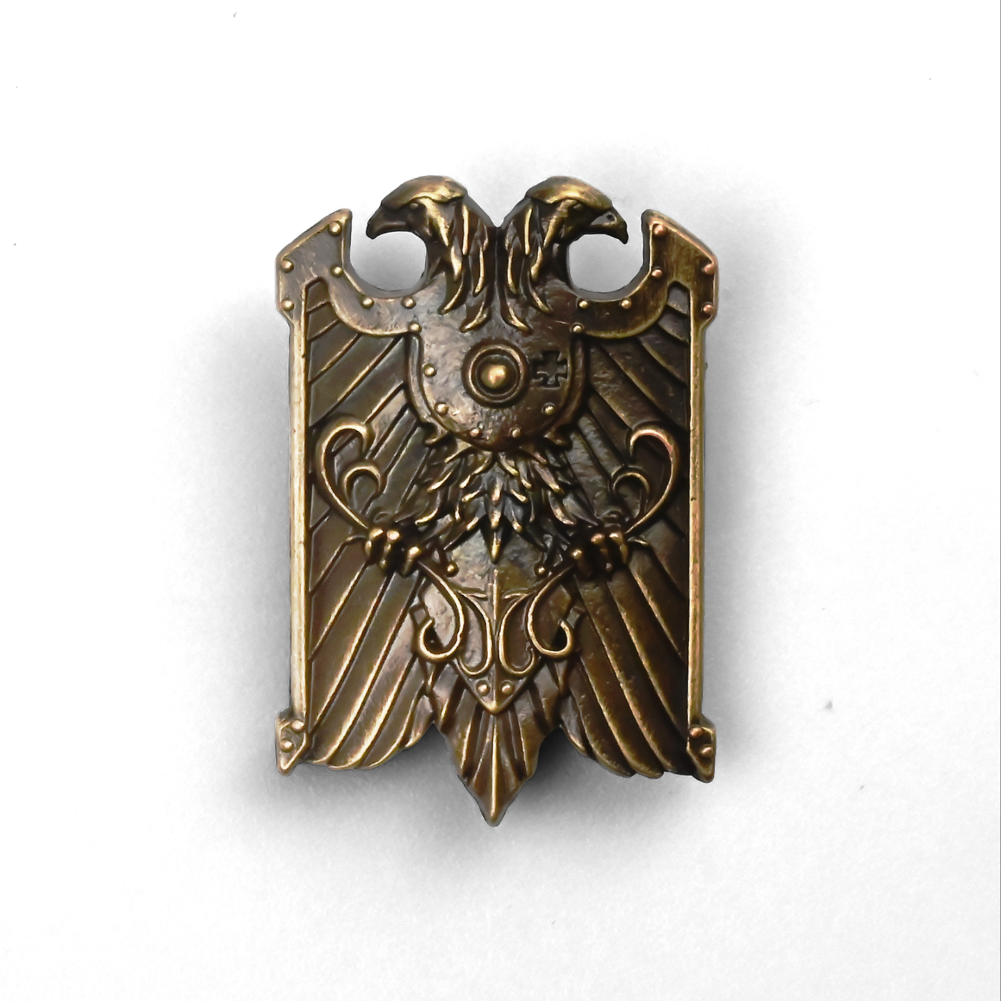 W ponurej ciemności odległej przyszłości, gdzie panuje jedynie wojna, Tarcza Reliktowa pozostaje świadectwem niezłomnej siły Imperium. Ten 6-centymetrowy metalowy pin to niezbędny kolekcjonerski dodatek dla każdego prawdziwego entuzjasty Warhammer 40k, pragnącego ukazać swoje oddanie potędze Imperatora. Wykonany z trwałego metalu, ten misternie zdobiony pin przedstawia majestatycznego dwugłowego orła na ozdobnej tarczy, symbolizując wieczną czujność i dualność władzy Imperium. Postarzane, brązowe wykończenie z misternie wygrawerowanymi piórami i wzmocnionymi krawędziami nadaje mu autentyczny, bitewny charakter, idealny do przypięcia na kurtkach, torbach lub tablicach kolekcjonerskich. Solidne, złote zapięcie z tyłu gwarantuje bezpieczne mocowanie, zarówno podczas codziennego użytkowania, jak i jako część kolekcji gadżetów Warhammer 40k. Ta tarcza reliktowa to coś więcej niż ozdoba – to odznaka lojalności, odwagi i niezłomnego obowiązku. Fani od razu rozpoznają jej potężną symbolikę, budząc dumę z wybranej frakcji oraz głębokie zanurzenie w ponadczasowym uniwersum Warhammer 40k.