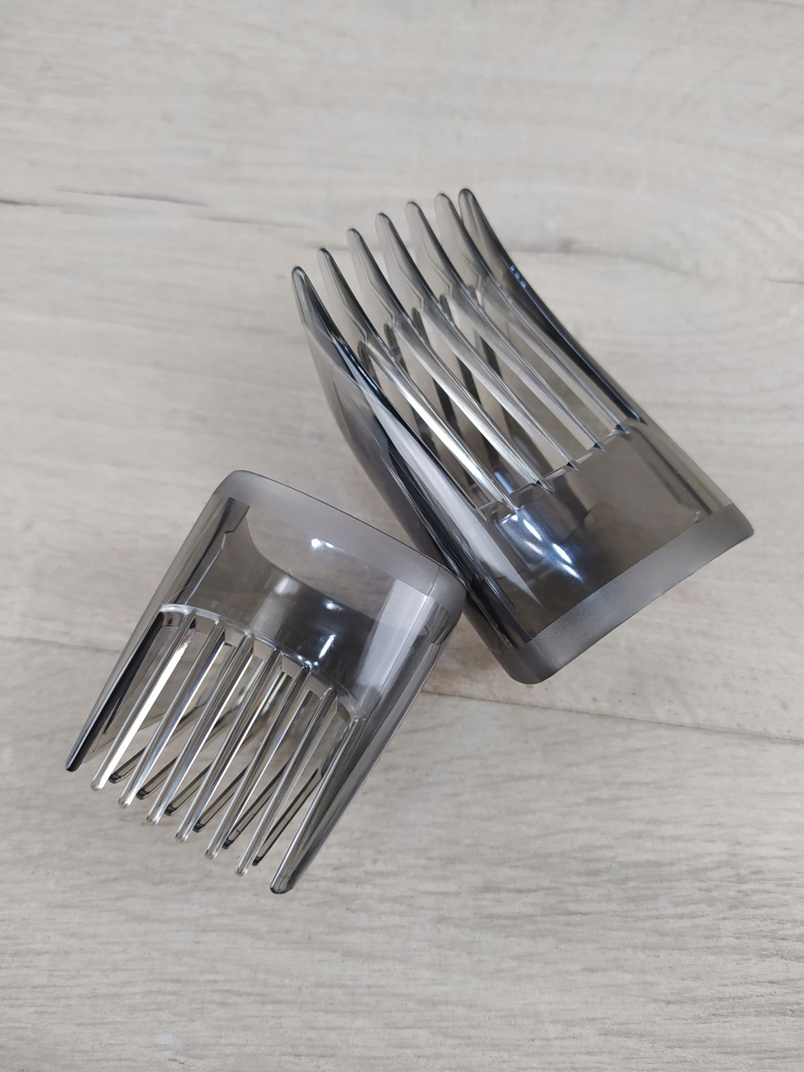 Za pomocą grzebienia do zarostu można uzyskać długość od 1,5 do 5 mm. Regulowany krótki grzebień umożliwia regulację fryzury w zakresie od 1,5 do 18 mm. Regulowany grzebień XL jest szczególnie odpowiedni dla osób z pełnymi brodami i włosami o długości od 20 do 35 mm. W wyposażeniu do obróbki drobnych detali znajduje się również maszynka do strzyżenia detali i długich włosów.