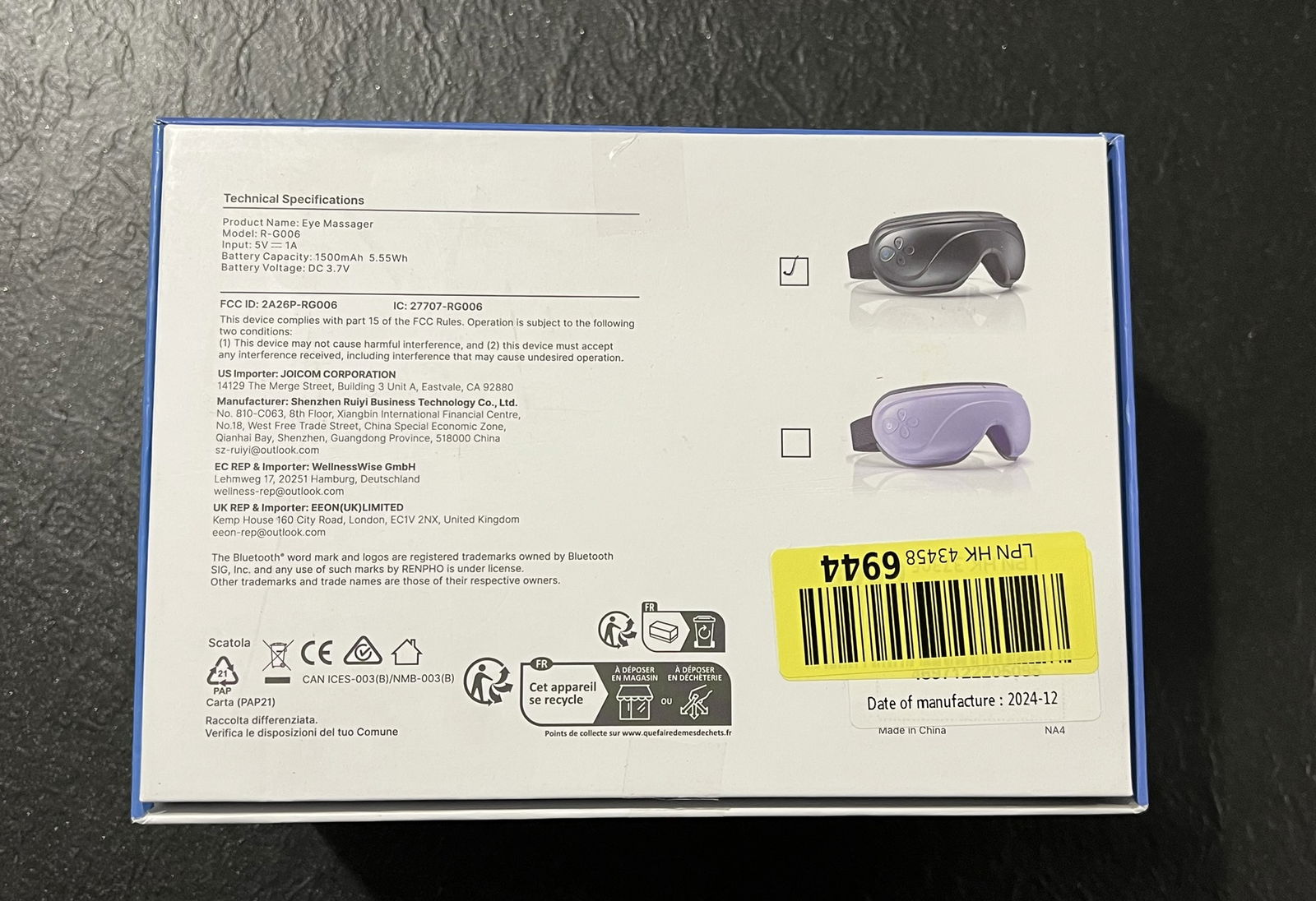 - Nowe doświadczenie z ugniataniem i naciskaniem – masażer oczu integruje masaż, kompresję i wibracje z nowo zaprojektowanym masażem ugniatającym. Górna i dolna część masażu oczu może być używana jednocześnie lub osobno, aby uzyskać różne wrażenia podczas ugniatania. Dobrze zmniejsza zmęczenie oczu dla każdego, kto pracuje przez długie dni lub studiuje późno w nocy.