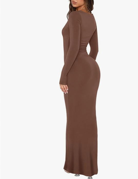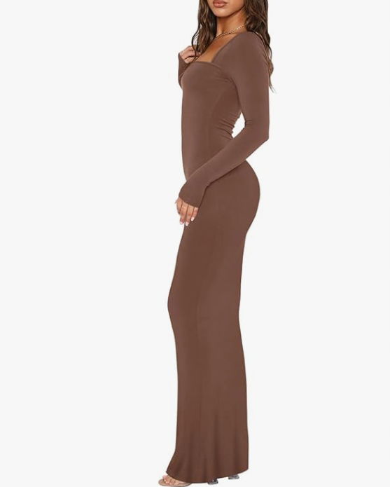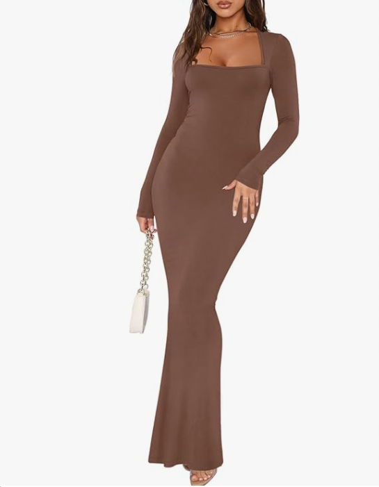 REORIA Damska prosta, sukienka z kwadratowym dekoltem i długim rękawem L