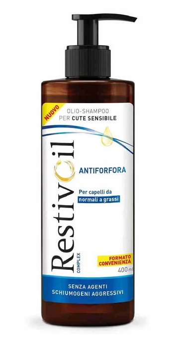 RestivOil Kompleks ze względu na specyficzne składniki: USA. Arginato i Piroctone Ofolia aktywnie walczy z łupieżem. Ponadto, dzięki obecności oleju Cucurbita Pepo, sprzyja równowadze nadmiernej produkcji sebum. Stosowany 2-3 razy w tygodniu, wykonuje skuteczne działanie uderzeniowe bez atakowania skóry głowy, dzięki delikatnemu preparatowi bez SLES (Sodium Laureth Sulfate) i SLS (Sodium Lauryl Sulfate). RestivOil Complex jest również idealny jako środek wspomagający w leczeniu stanów łojotokowych, uzupełniający opiekę łojotokowego zapalenia skóry oraz do oczyszczania skóry głowy w przypadku określonych leków przeciwgrzybiczych.