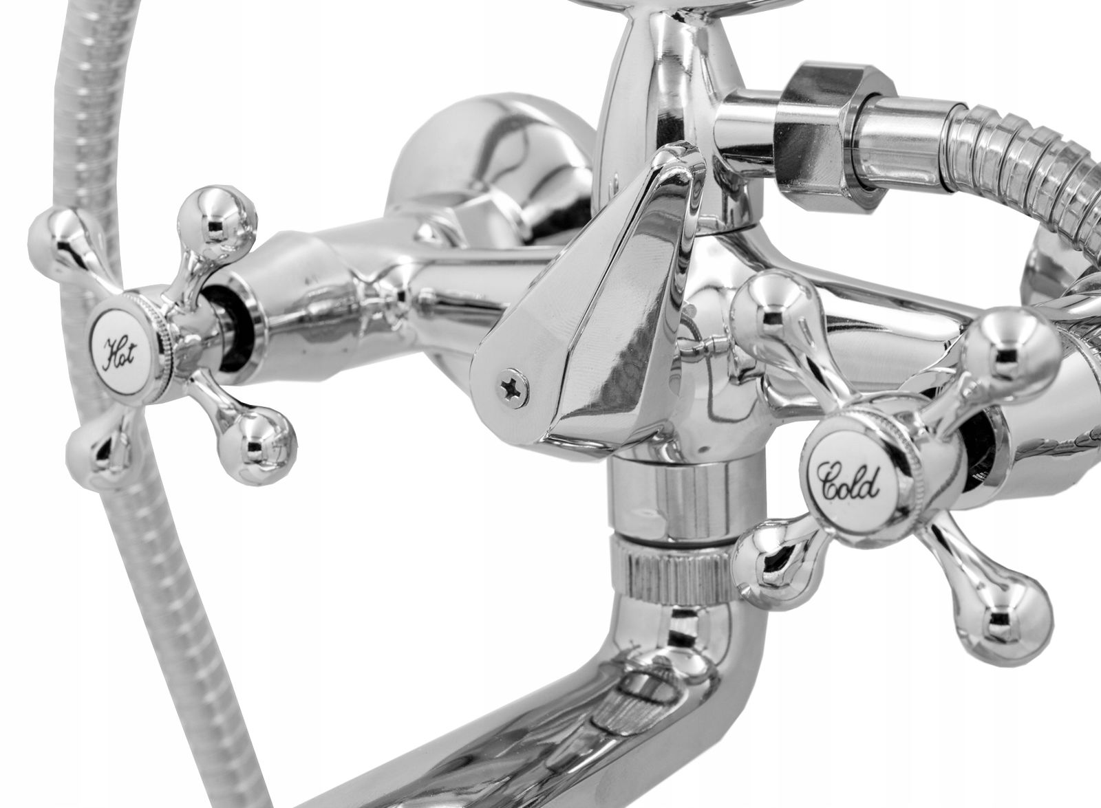 BATERIA WANNOWA ścienna z prysznicem RETRO sluchawka prysznicowa z wężem