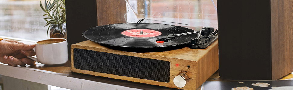 3 wybrane prędkości i osłona przeciwpyłowa: Ten nowo zaprojektowany odtwarzacz płyt winylowych jest wyposażony w 3 regulowane prędkości (33 1/3, 45, 78 RPM) odpowiednie dla wszystkich 7", 10" i 12" płyt winylowych. Posiada również osłonę przeciwpyłową, która skutecznie zapobiega gromadzeniu się kurzu, utrzymując produkt w czystości i porządku.