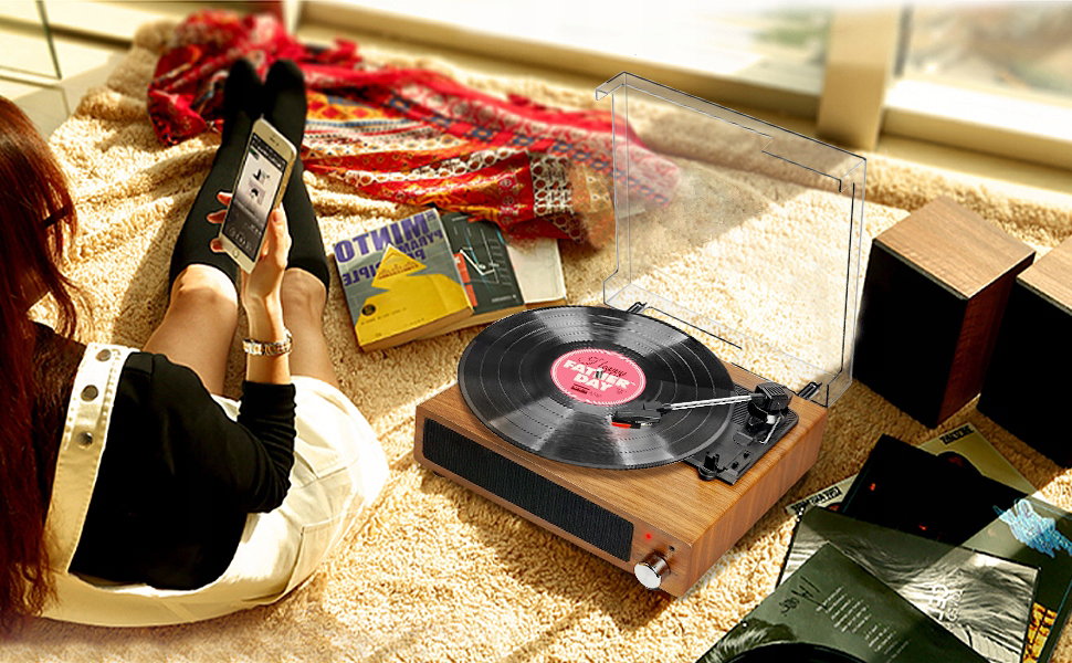Odtwarzacz płyt Bluetooth jest kompatybilny z gramofonami o 3 prędkościach (33, 45, 78 RPM) i odtwarza wszystkie płyty winylowe 7, 10 i 12 cali. Zawiera adapter 45 RPM. Łatwy w użyciu, prosta konfiguracja i obsługa, bez kłopotów z odtwarzaniem ulubionych płyt winylowych lub albumów. Przycisk automatycznego zatrzymania może sterować automatycznym zatrzymaniem płyt po zakończeniu odtwarzania.