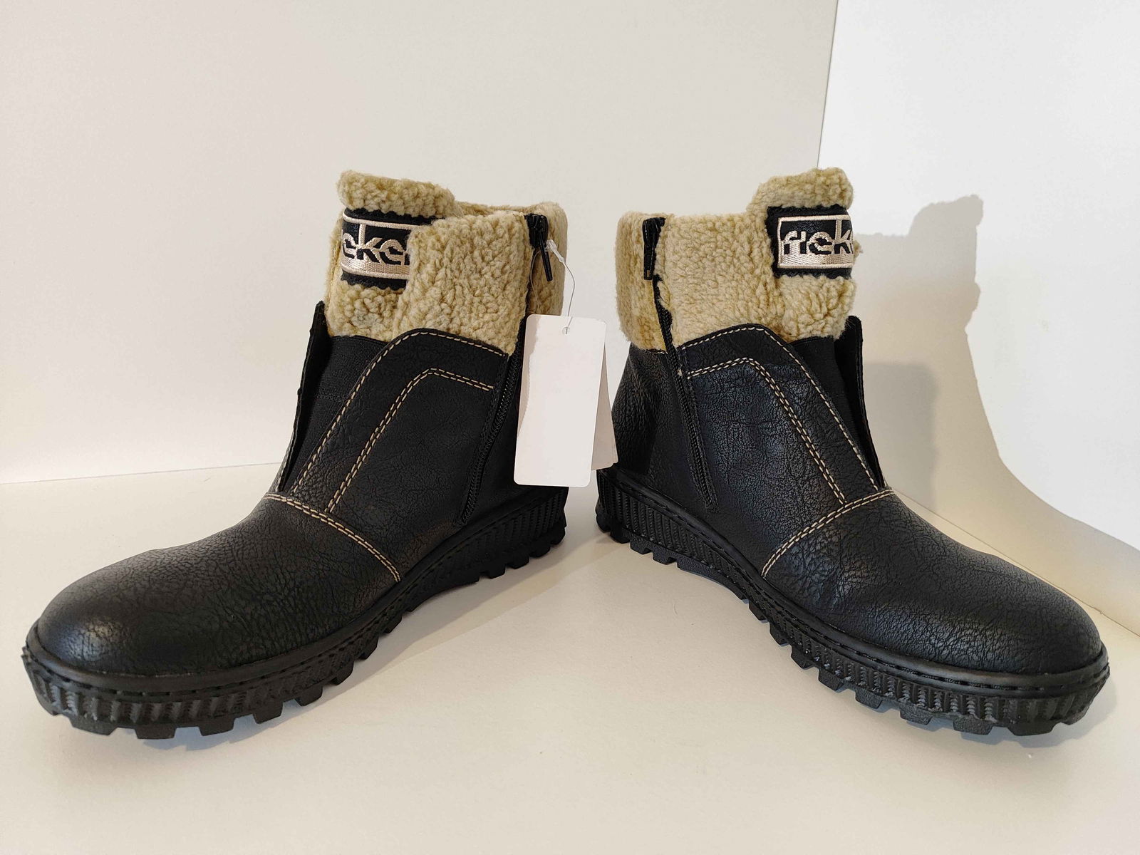 Rieker Botki Damskie Czarne Ocieplane Płaski Obcas Rieker Tex Antistress 39