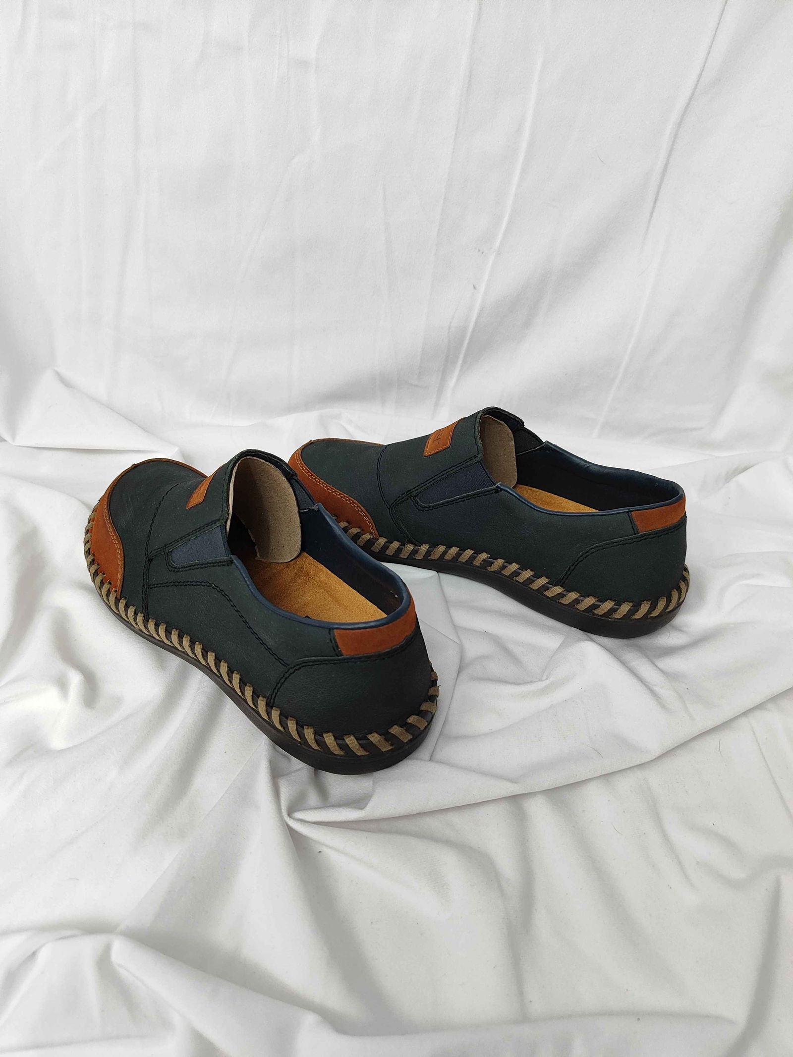Cholewka ze skóry nubukowej jest miękka i elastyczna, dzięki czemu dobrze dopasowuje się do stopy. Okrągły nosek zapewnia swobodę palcom, a lekka i elastyczna podeszwa zwiększa komfort chodzenia.