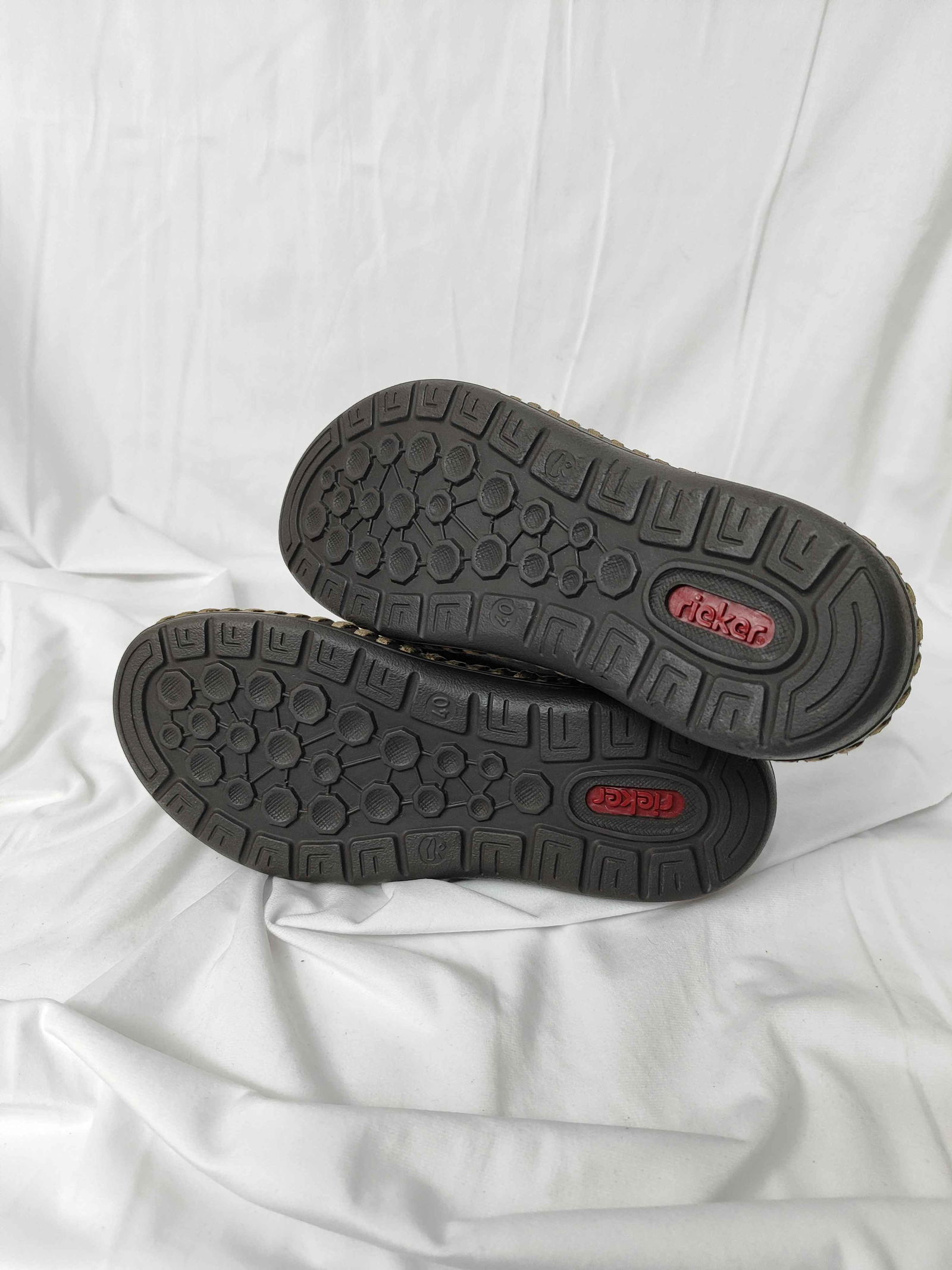 Męskie półbuty marki Rieker, model B2462-14, wykonane z miękkiej skóry nubukowej. To wygodny, wsuwany model typu mokasyny – idealny do codziennego użytkowania.