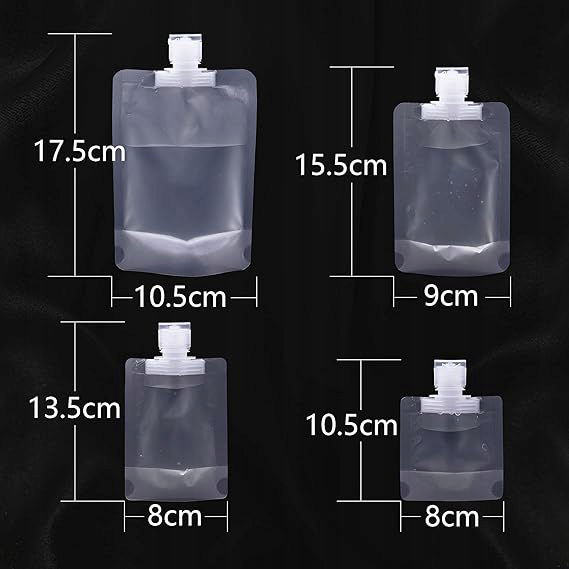 Zestaw zawiera aż 8 torebek w 4 różnych rozmiarach, co pozwala idealnie dopasować pojemność do rodzaju płynu. Niezależnie, czy potrzebujesz miniaturowej porcji żelu pod prysznic na jednodniowy wyjazd, czy większej ilości balsamu – zawsze masz właściwy pojemnik pod ręką.