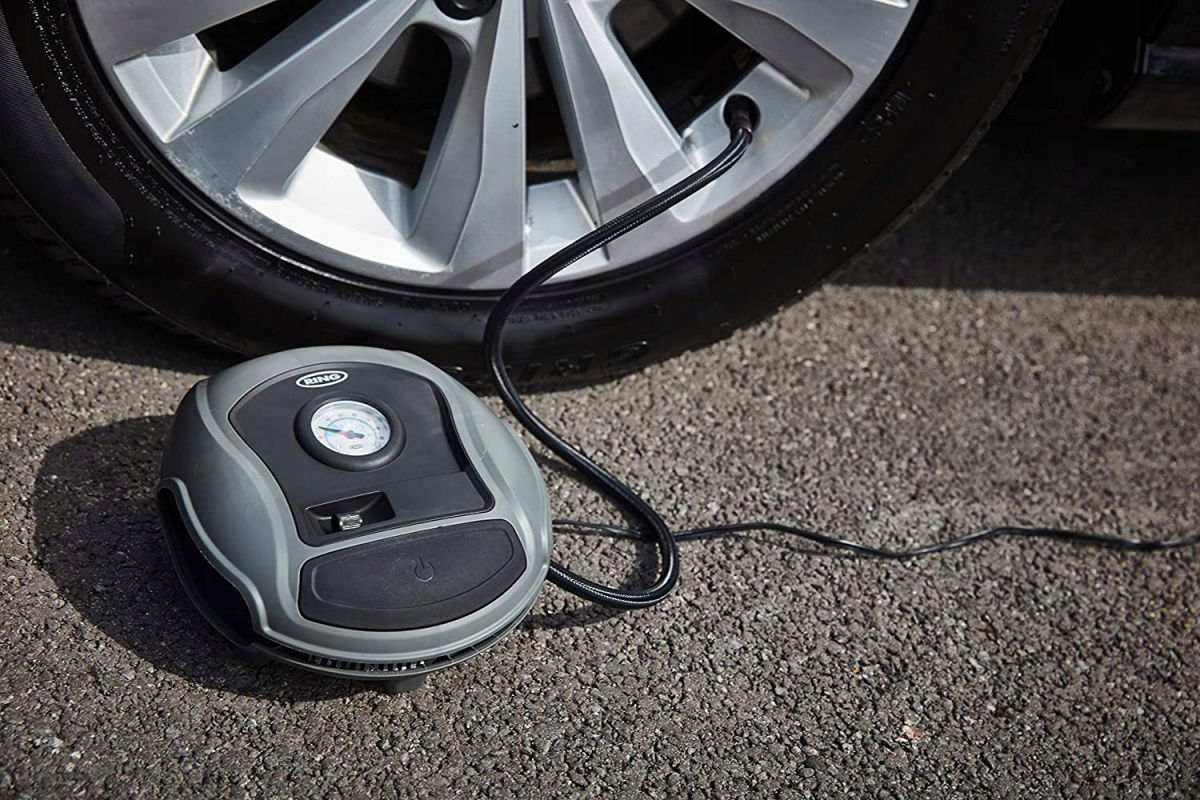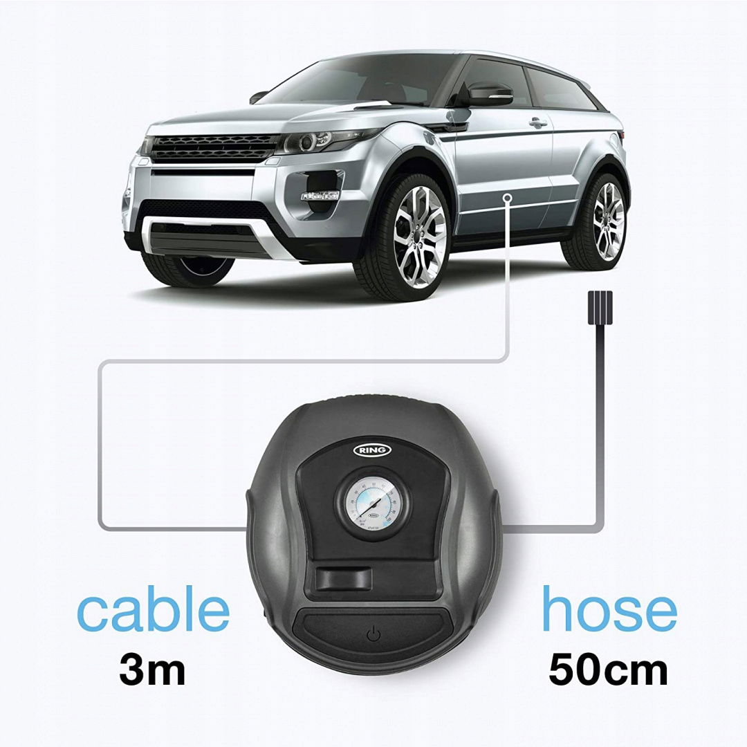 Długi kabel RTC100 zasilany z samochodowego gniazda 12V dociera do wszystkich opon w pojeździe. W zestawie trzyczęściowy zestaw adapterów do użytku z oponami rowerowymi, oponami motocyklowymi, piłkami i innymi pontonami.