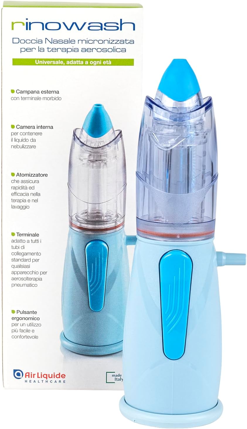 • Rinowash to idealny mikronizowany prysznic nosowy do leczenia infekcji górnych dróg oddechowych, zarówno sezonowych, jak i przewlekłych