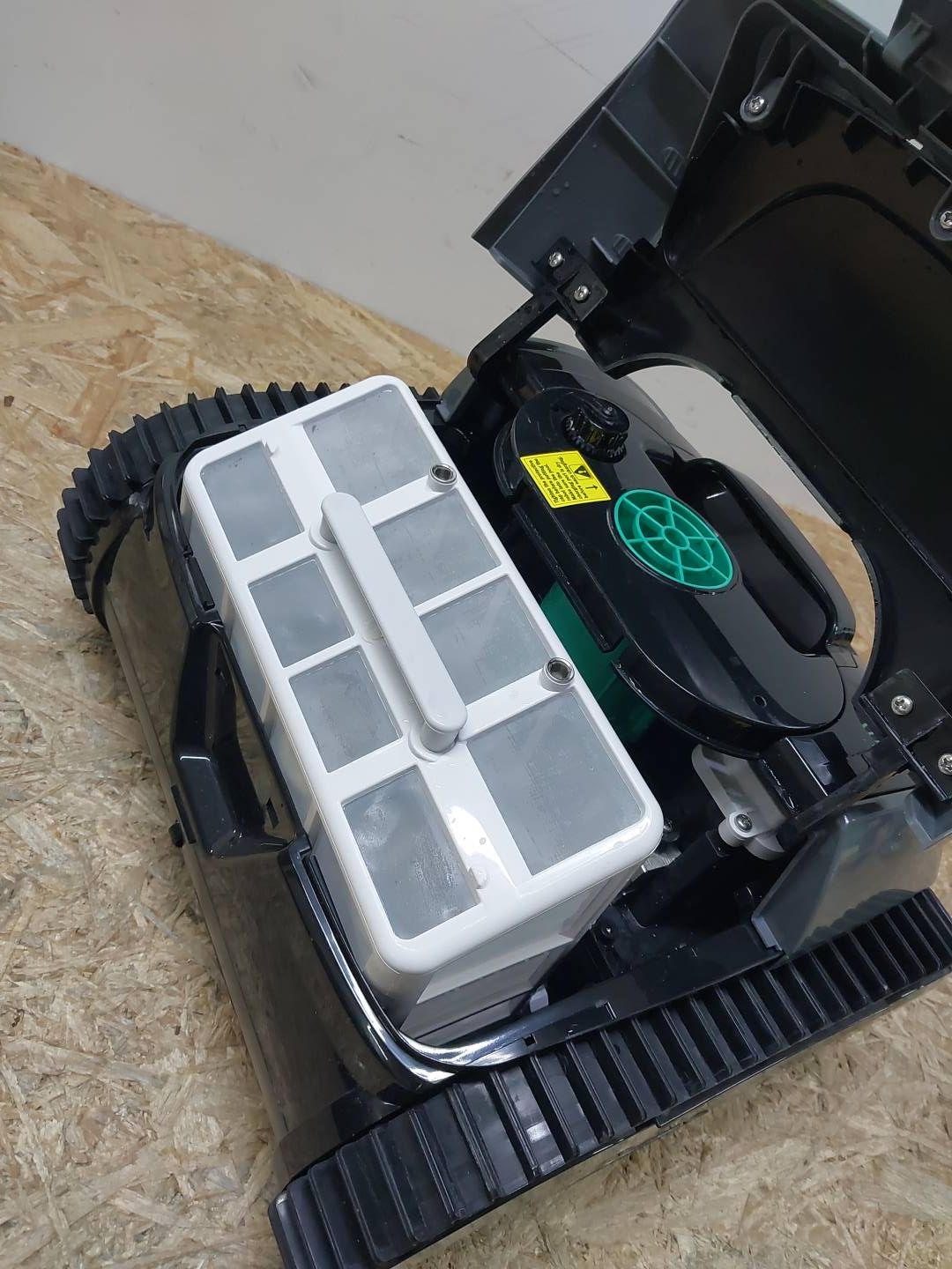 Duże, ładowane od góry wkłady filtracyjne o doskonałych właściwościach filtrujących, które zatrzymują i blokują zanieczyszczenia w celu optymalnego czyszczenia. Aby wyczyścić filtry, wystarczy nacisnąć przycisk z przodu, aby otworzyć górne pokrywy, wyjąć kosze filtrów z urządzenia do czyszczenia basenu i przepłukać je wężem ogrodowym.