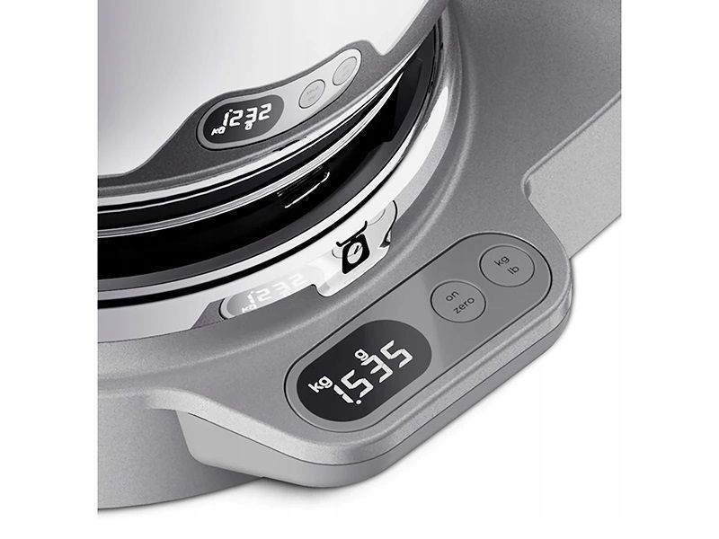 - Wbudowana waga EasyWeigh sprawia, że ważenie jest łatwe i precyzyjne - z dokładnością do 1g. Możesz ważyć składniki bezpośrednio w misie lub w wybranej przystawce – np. w blenderze lub malakserze.