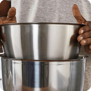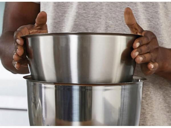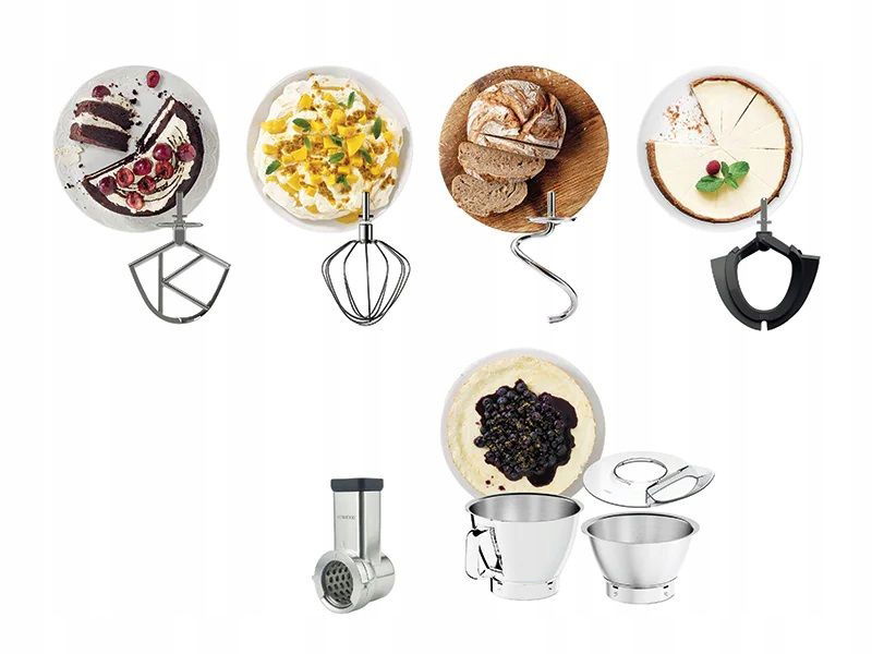 - Dwie misy z wysokiej jakości stali nierdzewnej o pojemności 5L i 3,5L zwiększają komfort pieczenia i gotowania. Misa o pojemności 3,5L mieści się w środku większej, co ułatwia ich przechowywanie. Wszystkie przystawki i akcesoria są kompatybilne z obiema misami
