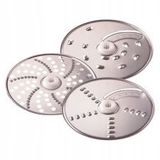 - Funkcjonalny zestaw akcesoriów uzupełnia tarcza do tarcia ziemniaków i twardych serów, która świetnie sprawdzi się przy przygotowywaniu ulubionych placków, zapiekanek czy dań kuchni włoskiej.