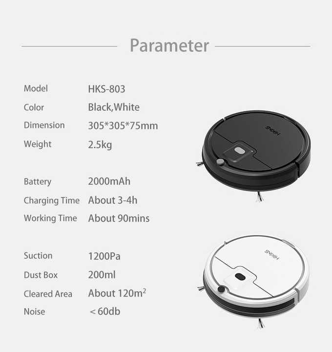 Robot sprzątający HiKiNS HKS-803 bialy moc ssania 2900Pa