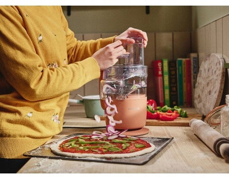- Oszczędzaj czas dzięki przystawce Express Serve™. Doskonale nadaje się do wszelkiego rodzaju tarcia i krojenia prosto na talerz lub patelnię – główna misa zawsze pozostaje czysta, dzięki czemu możesz zaoszczędzić na zmywaniu.