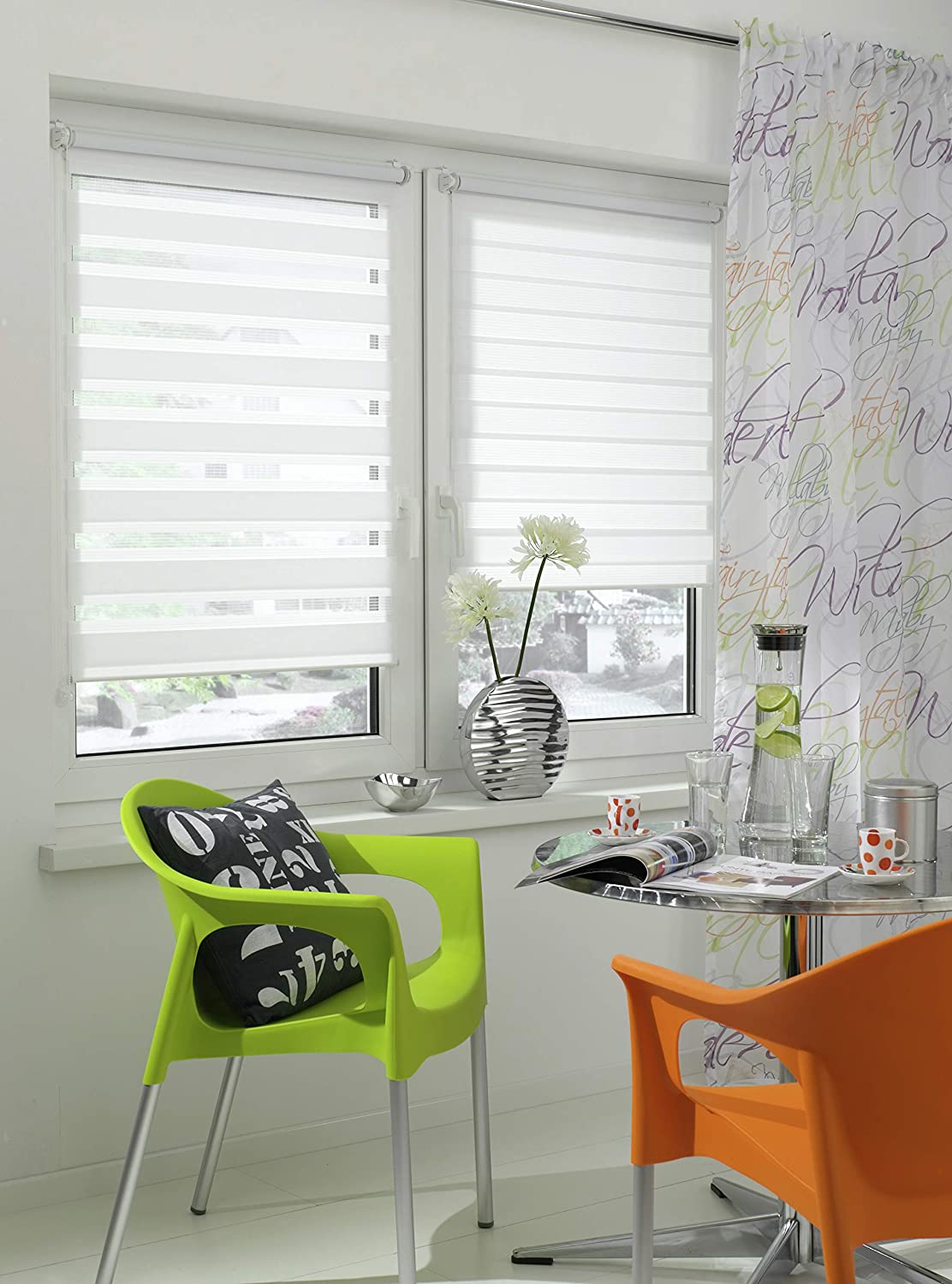 - Zawartość: 1x GARDINIA Easyfix roleta podwójna do mocowania lub klejenia, Wszystkie elementy montażowe w komplecie, Kolor: biały, 100% poliester, 75 x 150 cm, Szerokość tkaniny: 70 cm, Szerokość rolety: 75 cm