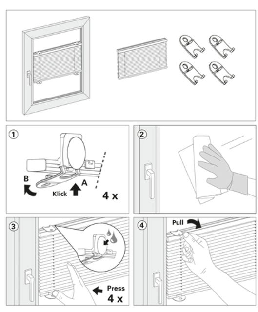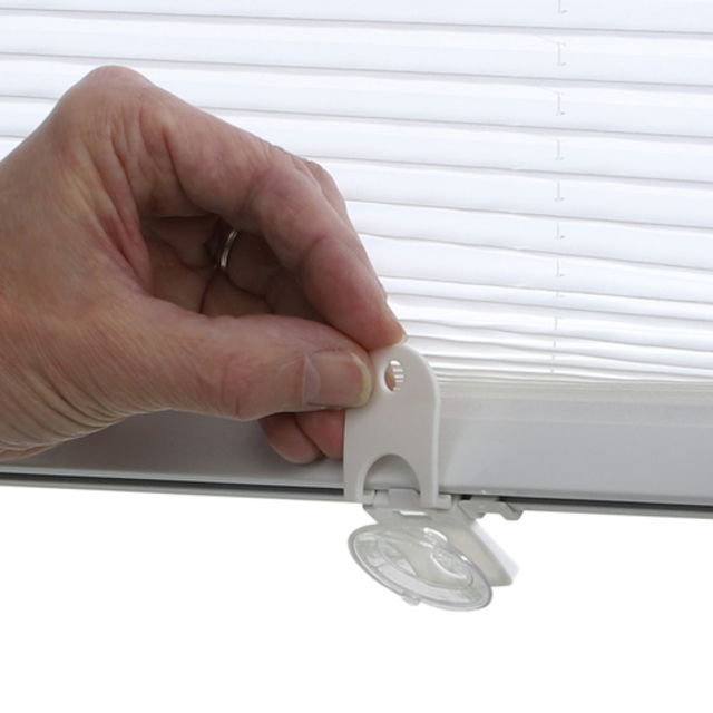 - Łatwa ręczna regulacja napiętej rolety plisowanej dzięki przyssawkom