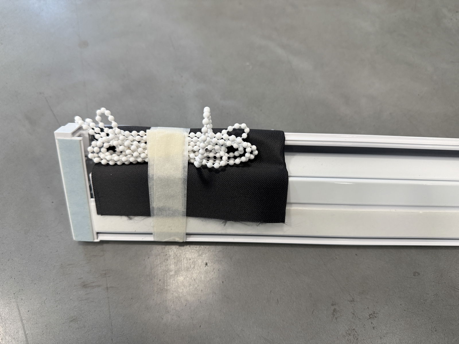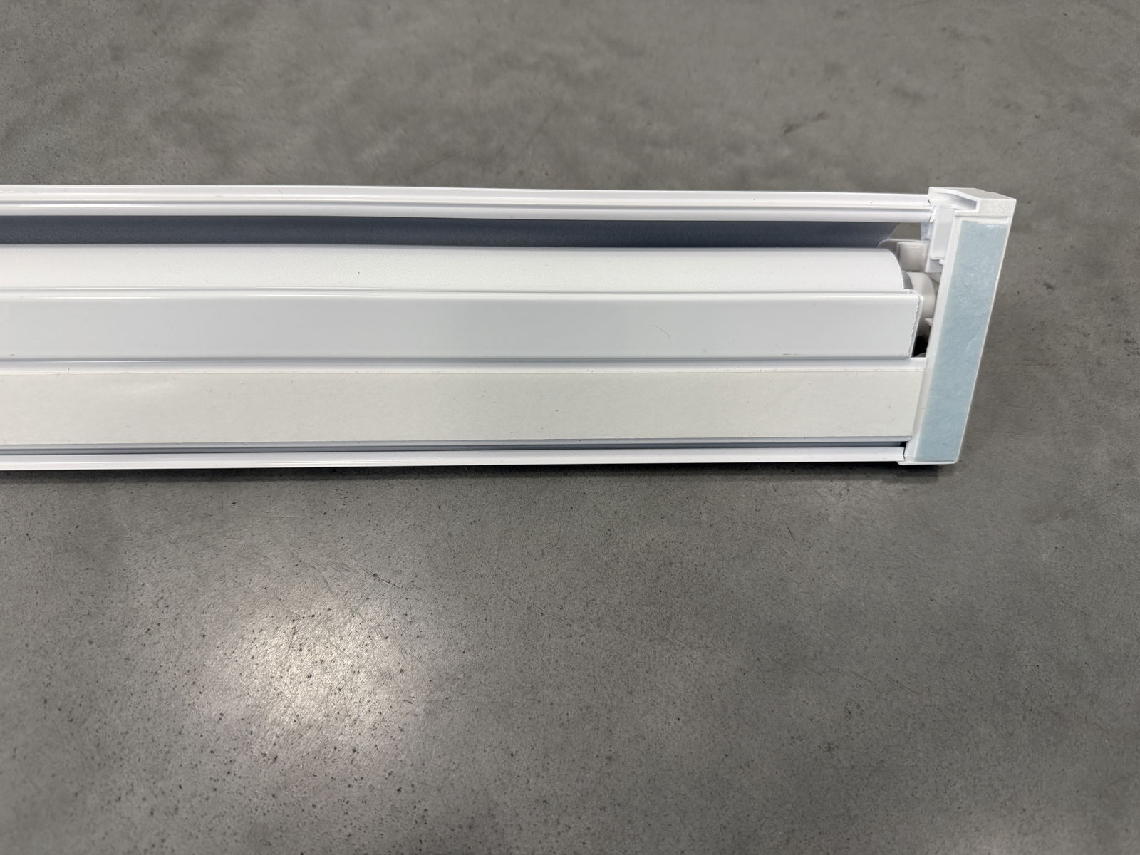 Dane techniczne: - model (kaseta) UNI Plus biała - tkanina MGR-051 biała, zaciemniająca - prowadnice białe, aluminiowe, system bezinwazyjny - kaseta i prowadnice samoprzylepne - niezawodny mechanizm koralikowy
