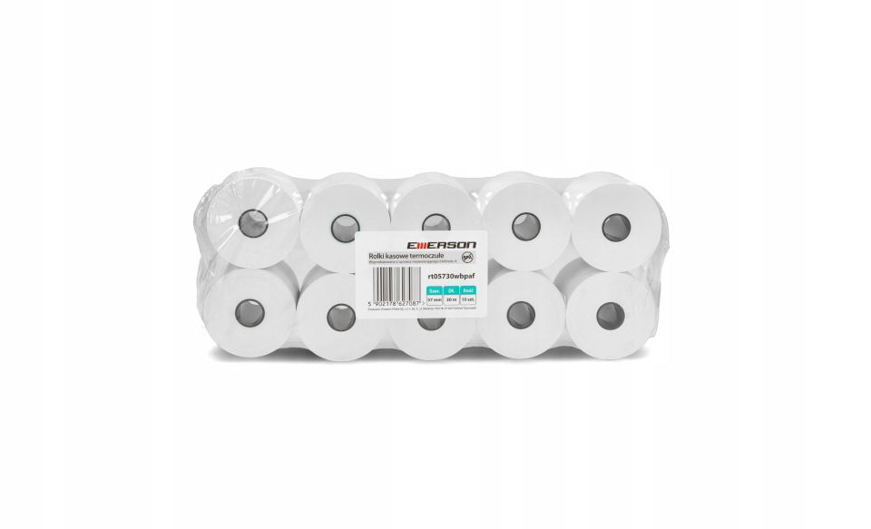 Rolki termiczne 57 mm x 30 m Emerson to niezastąpione akcesorium dla Twojego biznesu. W opakowaniu znajdziesz aż 10 sztuk, które gwarantują długotrwałe użytkowanie w najwyższej jakości.