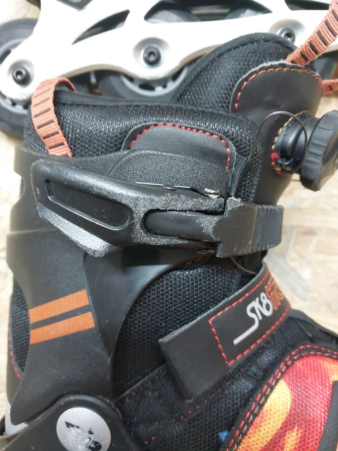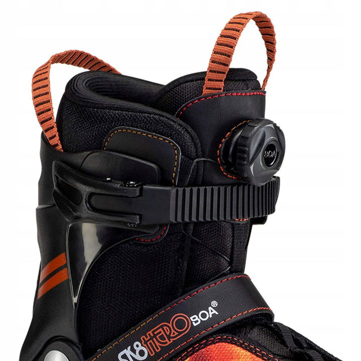 System zamykania Boa – za pomocą jednego obrotu łyżworolki można idealnie dopasować do stopy – zamontowany hamulec (możliwość zmiany na lewym bucie)