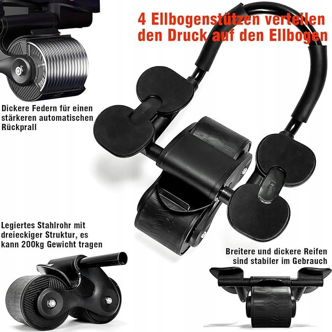 - Innowacyjne automatyczne odbicie jest bezpieczniejsze: domowy przyrząd do ćwiczenia mięśni brzucha z wbudowanymi pogrubionymi sprężynami stalowymi, może budować siłę, pchać do przodu, a następnie automatycznie odbijać się. Koło odbijające do ćwiczeń mięśni brzucha może nie tylko poprawić efektywność treningu, ale także zapewnić stabilny system hamowania, zapobiegając kontuzjom sportowym, dlatego nasze automatyczne koło odbijające do ćwiczeń mięśni brzucha jest bardzo odpowiednie dla początkujących.