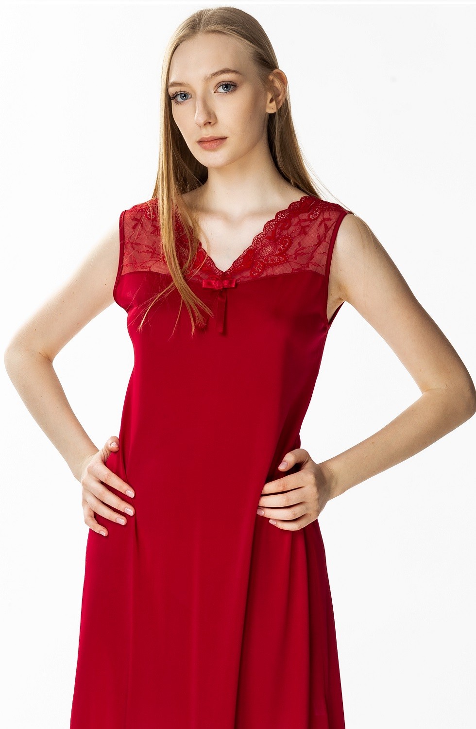 Romantyczna koszula nocna Paula z koronką 48 Burgundowy