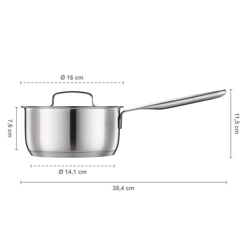 Średnica: 16 cm, waga: 930 g, materiał: stal nierdzewna 18/10, kolor: srebny