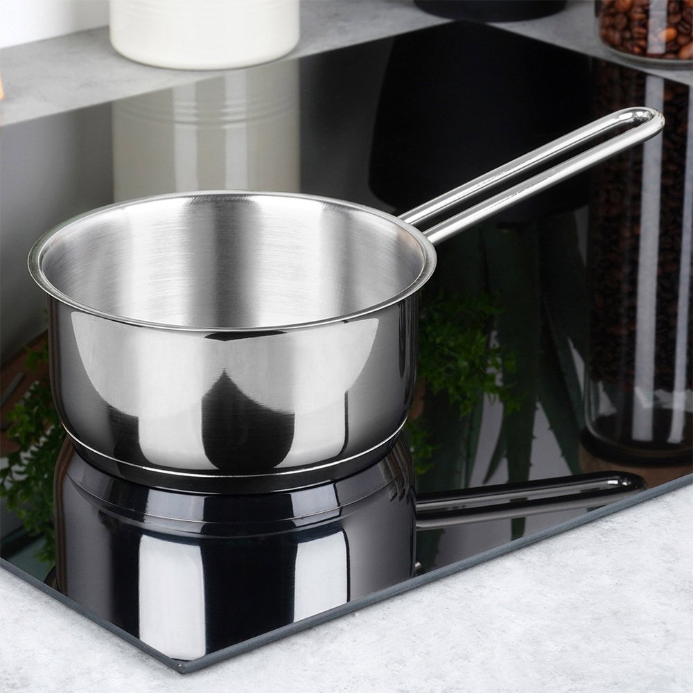 Rondel Rondelek Mały Garnek z Długim Uchwytem Stalowy Nierdzewny 14 cm 0,9L
