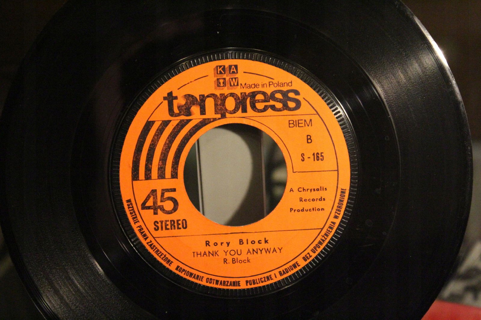 płyta: była wielokrotnie odtwarzana, ale nie odznacza się znaczącym spadkiem jakości dźwięku, mimo zauważalnych znaków na powierzchni oraz niewielkich zarysowań;