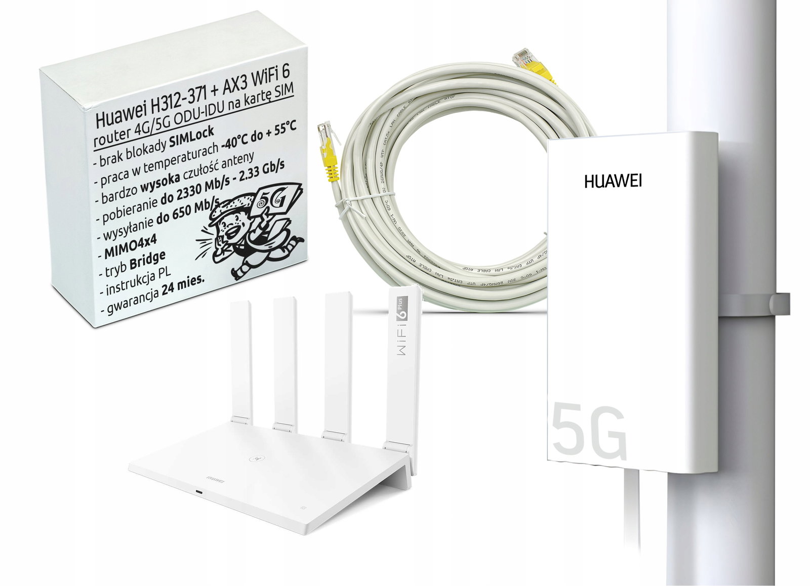 Router zewnętrzny Huawei 5G 4G LTE z agregacją 5 pasm Antena ODU-IDU WiFi 6