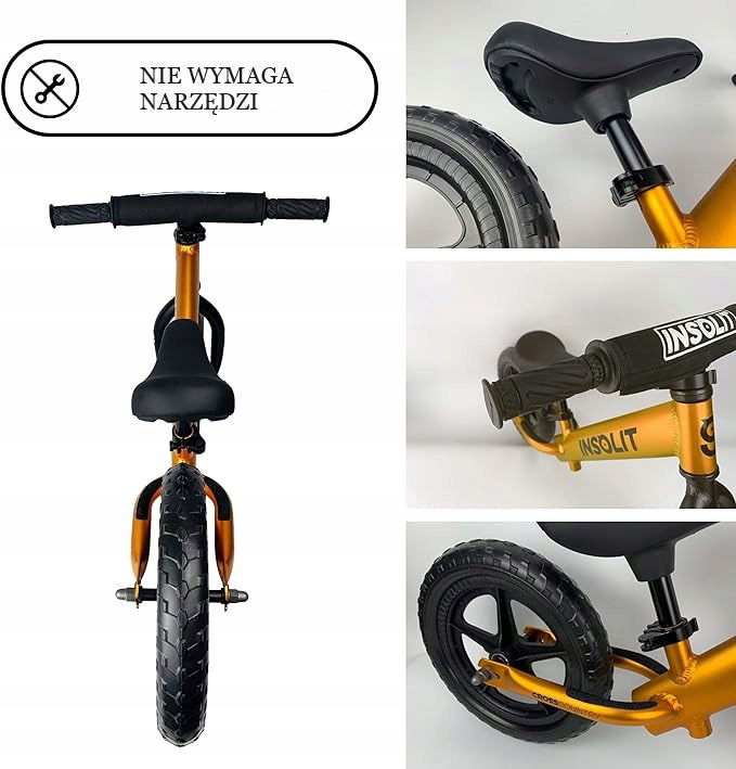 ULTRALIGERA: Rower bez pedałów INSOLIT jest niezwykle lekki, waży zaledwie 1,9 kg. Super lekka aluminiowa rama i widelec wraz z kołami z pianki EVA sprawiają, że jest to jeden z najlżejszych rowerów biegowych na świecie.