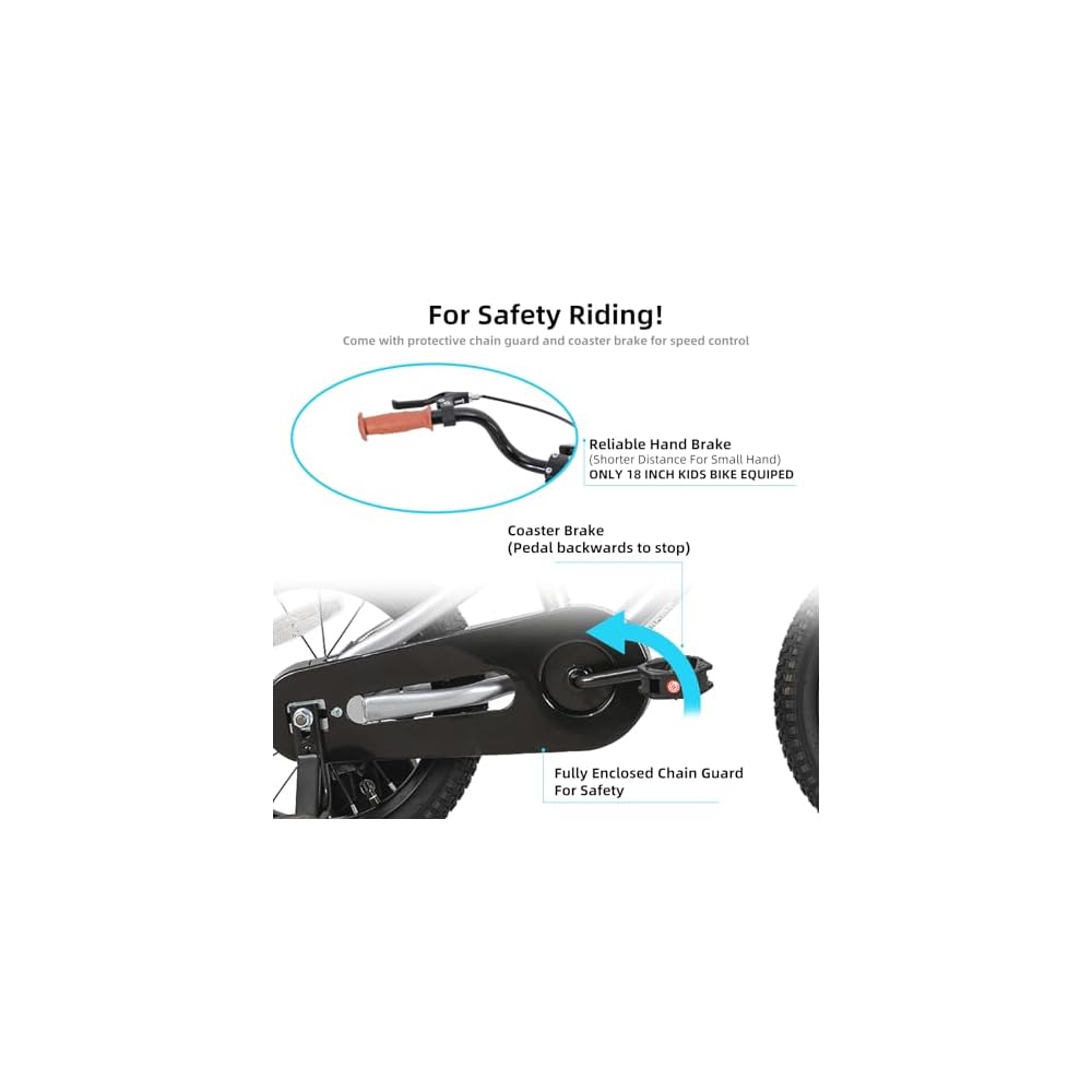 1. Ten rower dla dzieci jest wyposażony w stabilne koło treningowe wczesnego kierowcy. 2 .Szybkie zwalnianie siedzenia upraszcza regulację wysokości. 3 .Wygodne Siodło 4.Hamulec nożny odpowiedni dla młodego kierowcy nie ma wystarczającej mocy, aby manipulować hamulcem ręcznym. Osłona łańcucha dobrze chroni łańcuch, będzie trwać dłużej niż inne rowery, twoje dziecko nie odniesie obrażeń, gdy dotknie łańcucha.