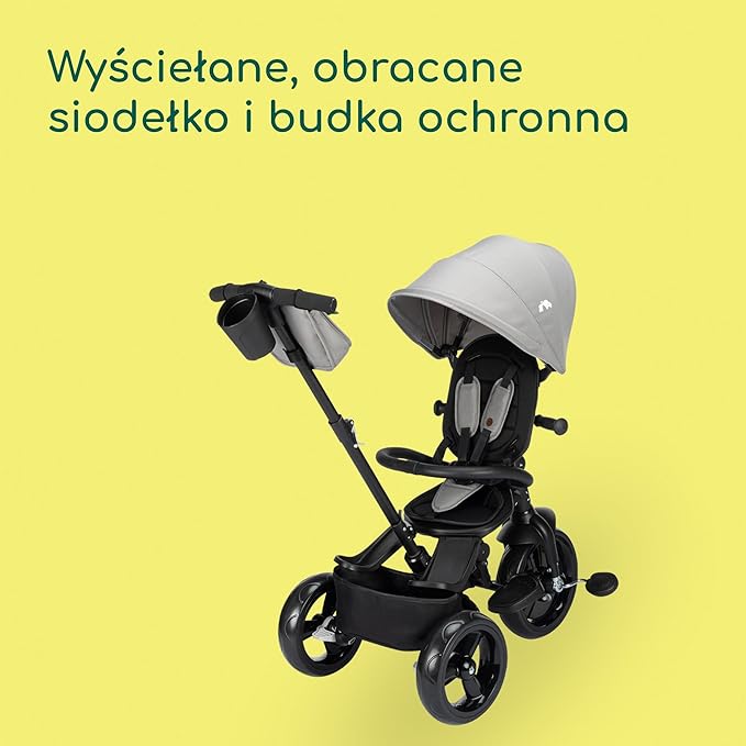 Komfort podczas każdej jazdy Wyściełane, odwracalne siedzisko i ochronny daszek zapewniają Twojemu maluchowi wygodę podczas każdej jazdy na trójkołowcu.