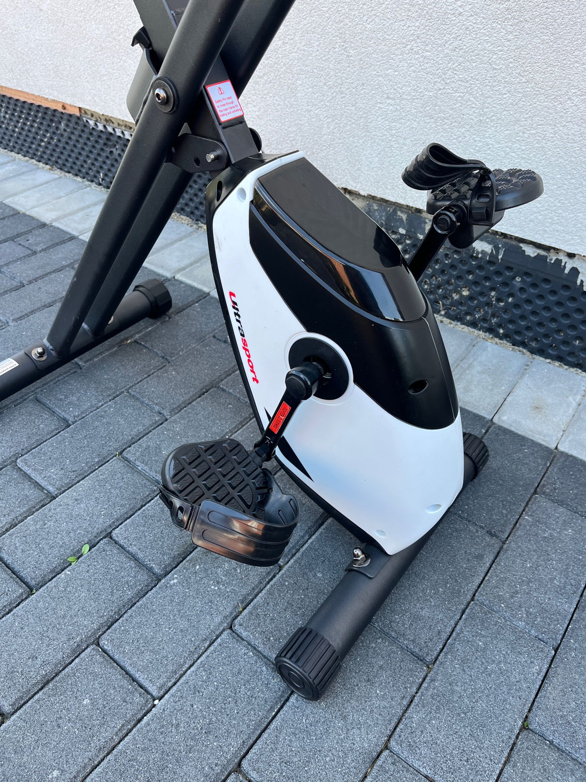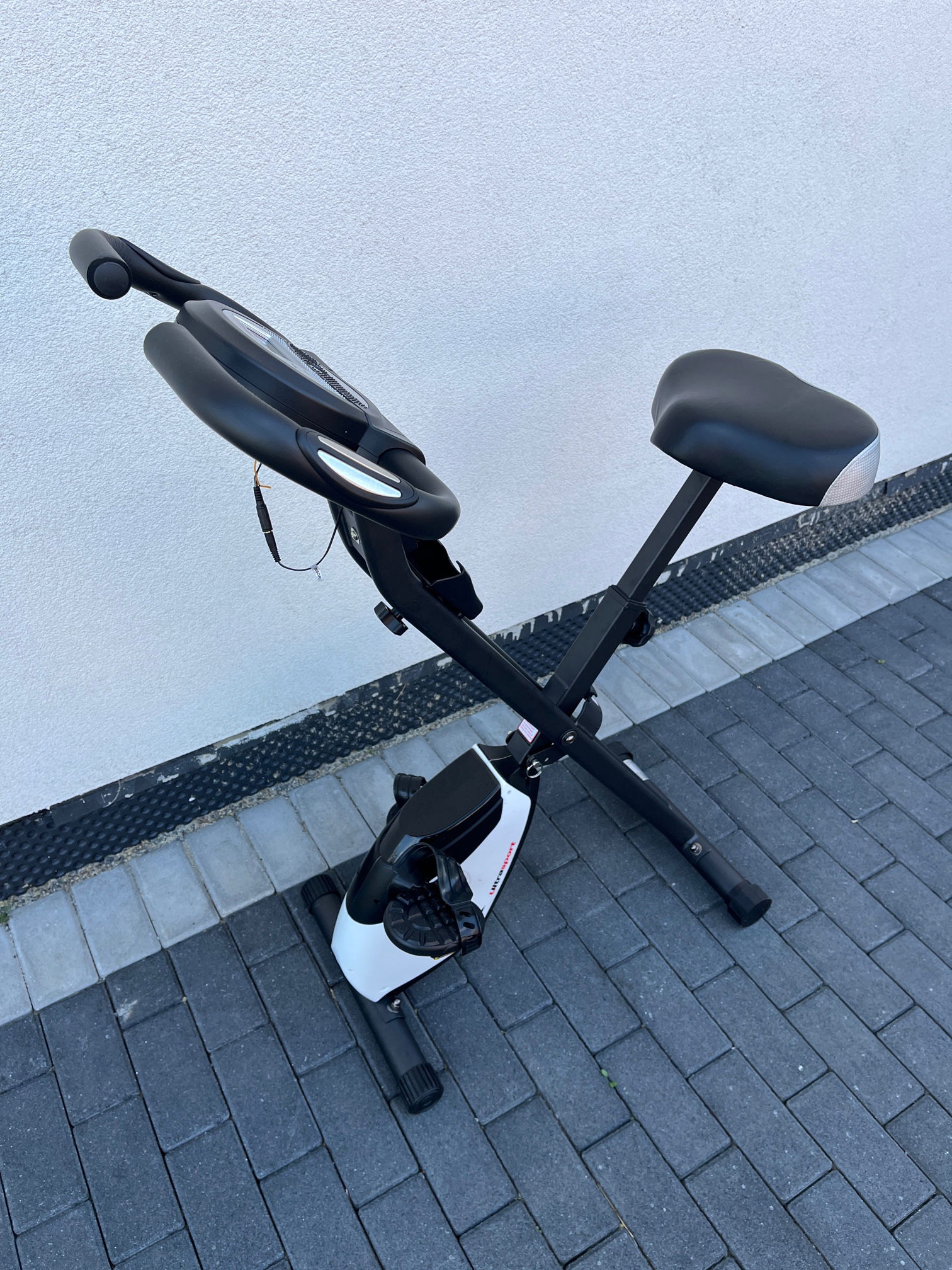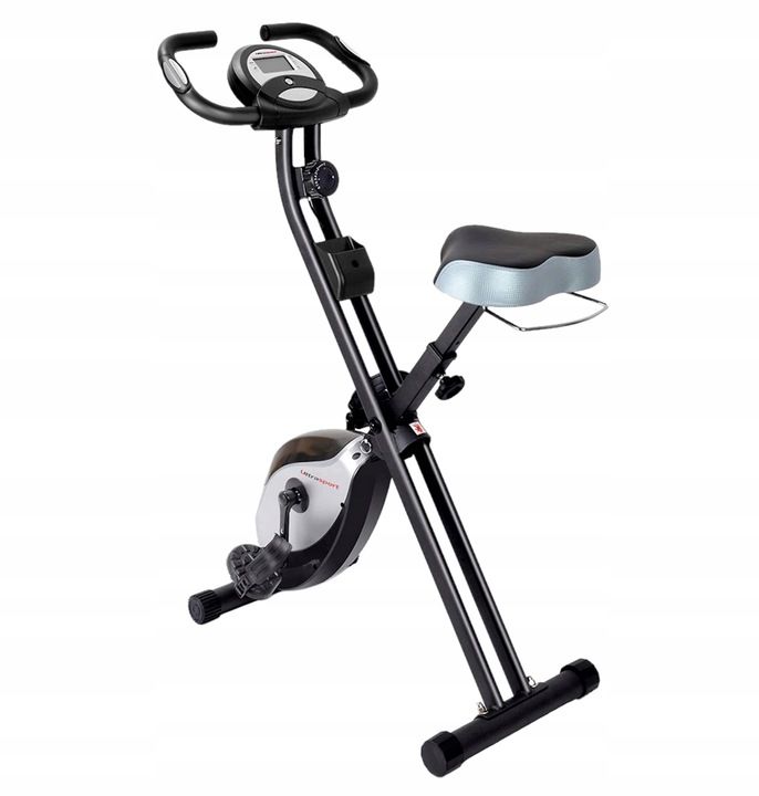 Mechanizm składania Ręczne czujniki tętna Maks. Waga użytkownika: 100 kg Wyświetlacz LCD z funkcją komputera Dwukierunkowe łożyska kulkowe Osiem poziomów oporu