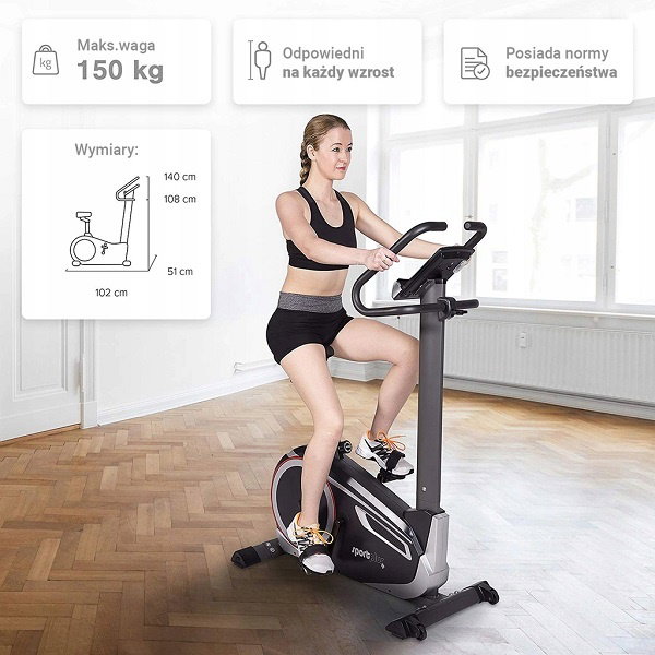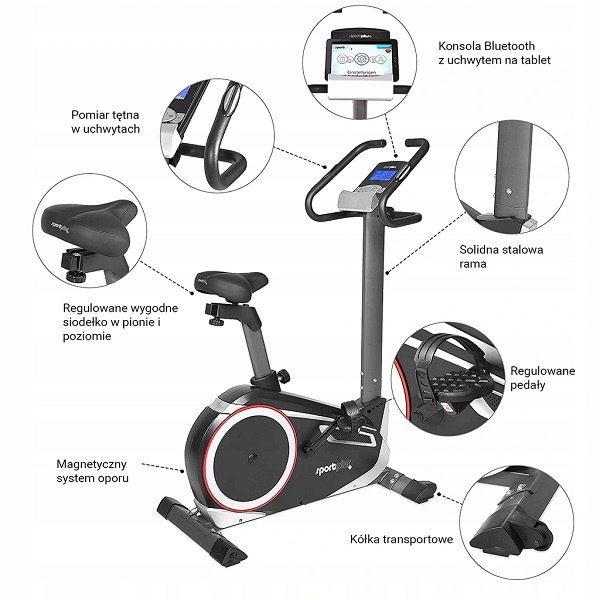 - Rower SportPlus posiada wygodne siodełko Kingsize, które zapewnia wysoki poziom komfortu podczas treningu.