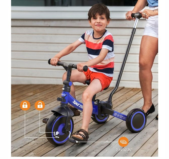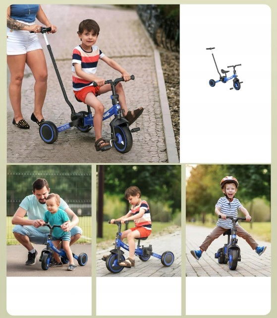 ✅ Funkcjonalność 5 w 1 – Transformuje się w rowerek biegowy, trójkołowiec, rowerek oraz pomocnik do chodzenia, dostosowując się do rozwoju dziecka.