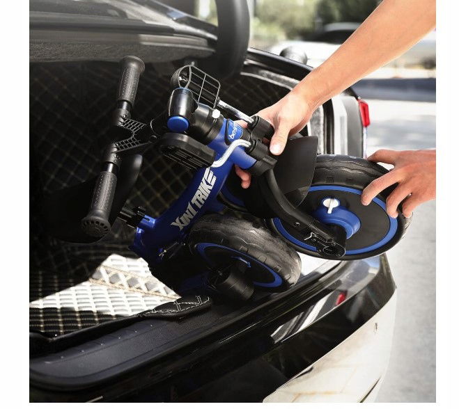 Rowerek biegowy besrey 5 w 1 w kolorze niebiesko-czarnym to wszechstronny towarzysz rozwoju dziecka od 1 roku do 4 lat. Wykonany z wytrzymałego plastiku, ten trójkołowy rowerek transformuje się, pełniąc funkcje rowerka biegowego, trójkołowca i pomocnika do chodzenia, dostosowując się do zmieniających się potrzeb malucha. Waży 6,94 kg i może udźwignąć do 25 kg. Jego wymiary to 61D x 44S x 50W cm (rowerek) oraz 78D x 45S x 104,9W cm (rozłożony).