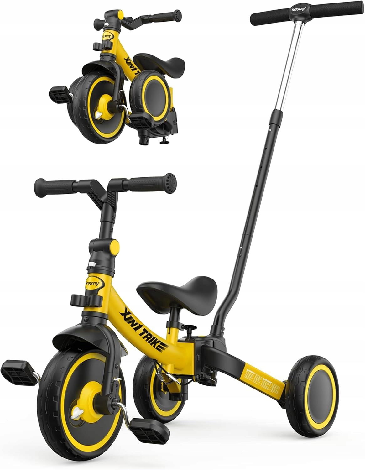 Rowerek trójkołowy dla dzieci 5-stopniowa regulacja uchwytu żółty Besrey