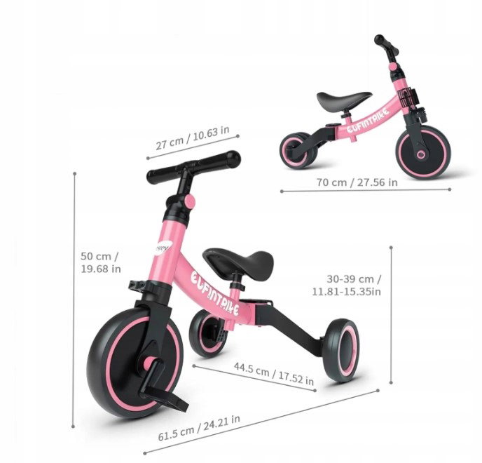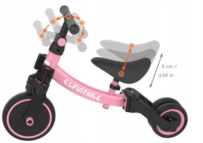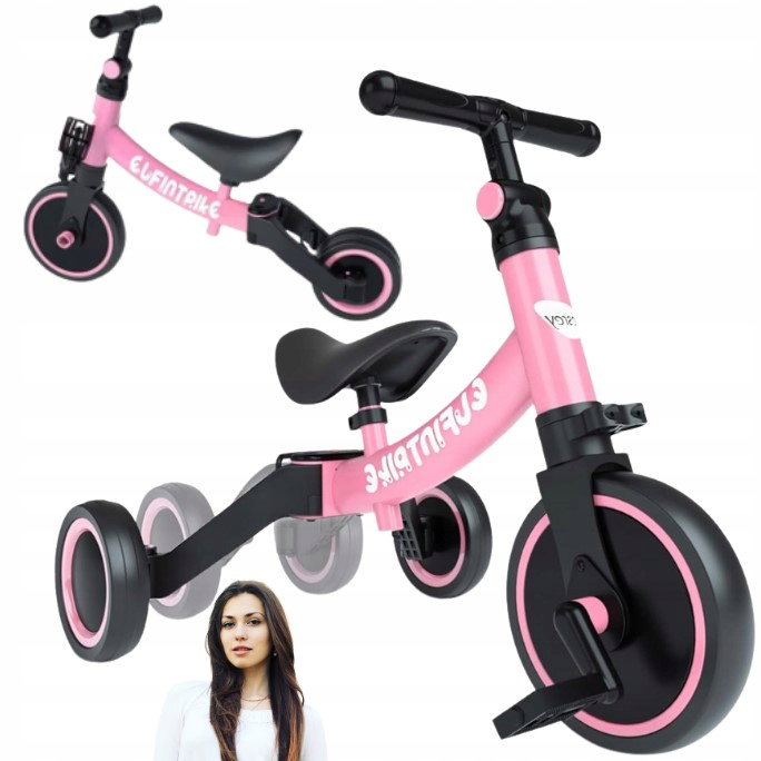 Rowerek trójkołowy koloru różowego regulowany lekka waga do nauki Elfintipl